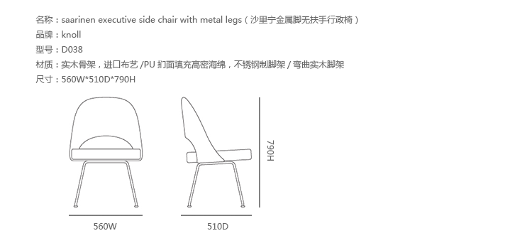 - 坐具|餐椅|办公家具|设计师家具|沙里宁金属脚无扶手行政椅