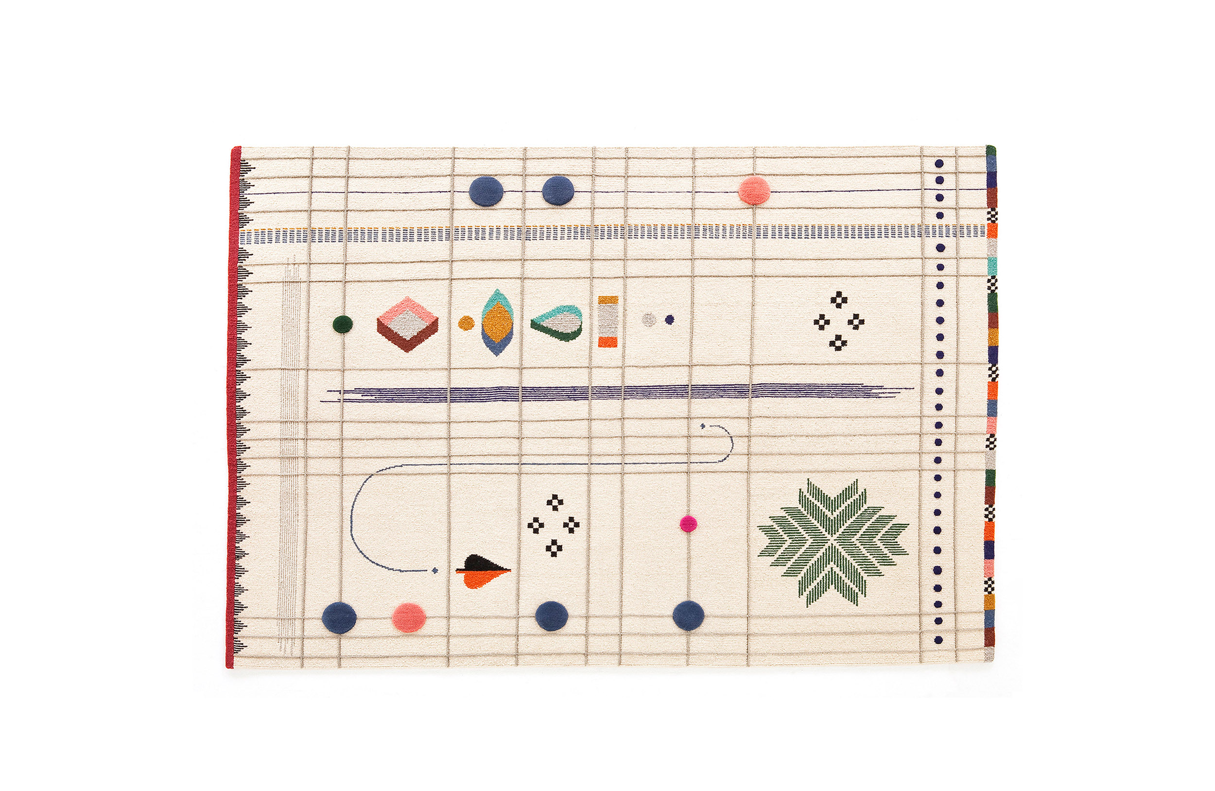 除了美丽的羊毛卷曲,Rabari有四个地毯(两个是米色的,一个是黑色的,一个是橄榄绿的),还有一个突出的设计,一幅Doshi Levien设计了一种精致的节奏和独特的视觉美感组合的画布。