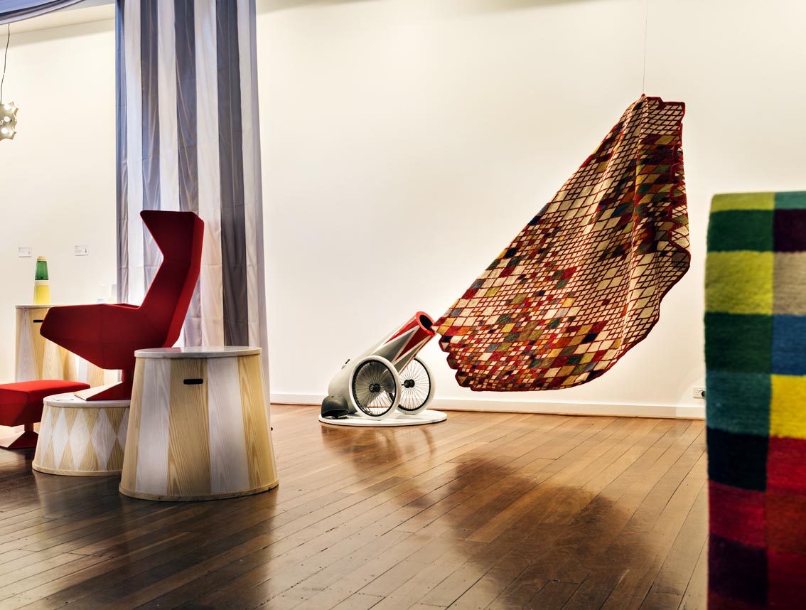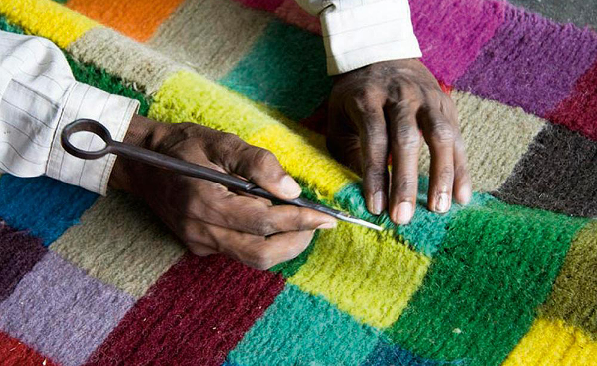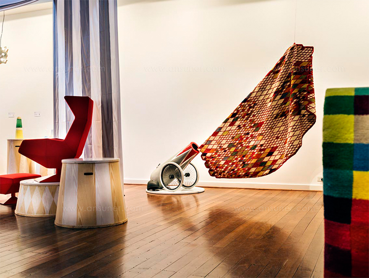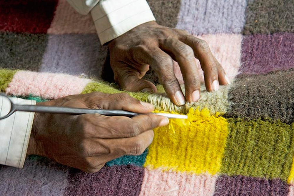 现在,他把他的特殊眼光体现在这两个由手工打结的羊毛制成的地毯上,一种色彩鲜艳,另一种则用柔和的色调。