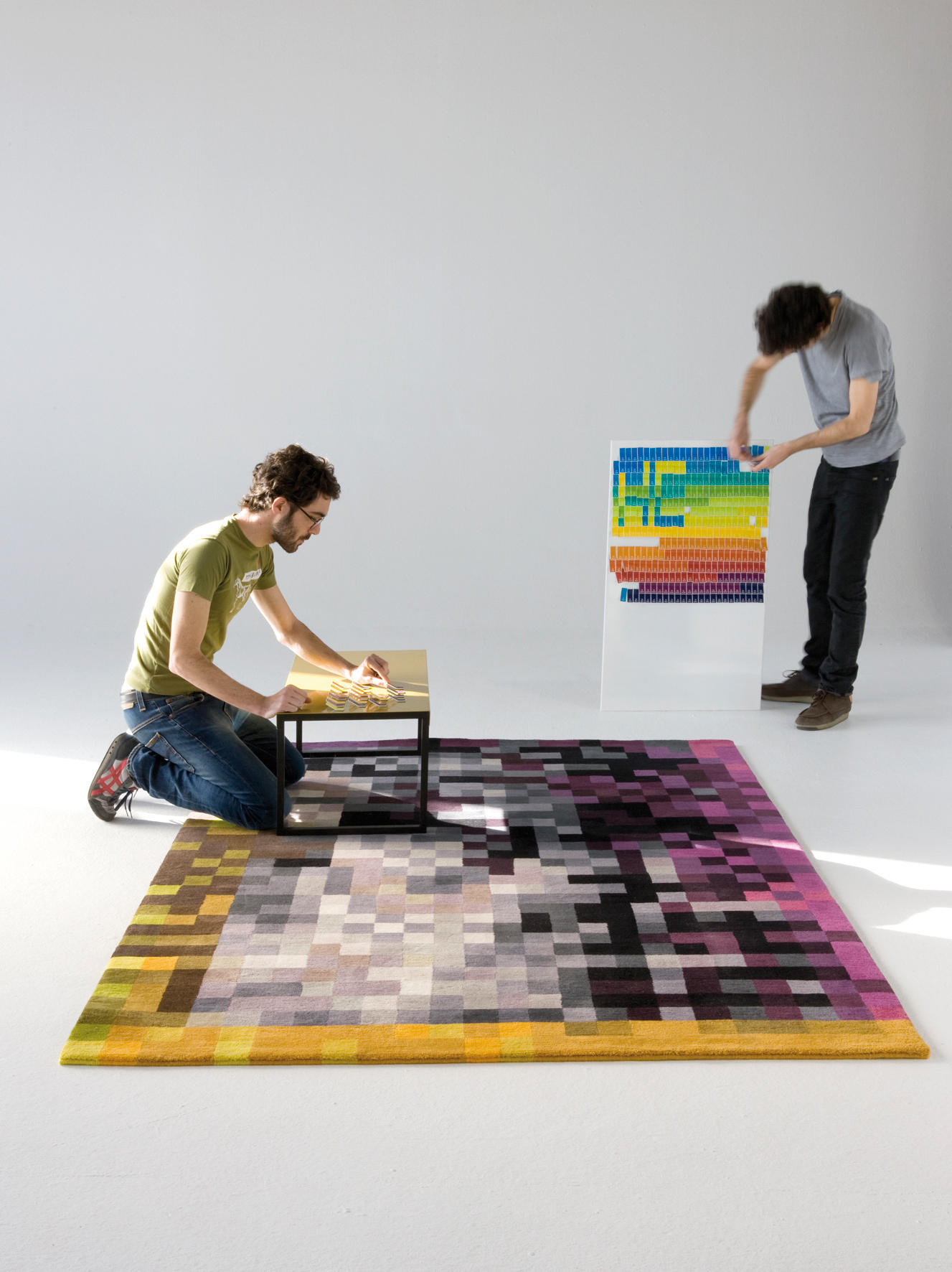 这两款地毯都有照片放大的来源,让它们看起来像数码像素。