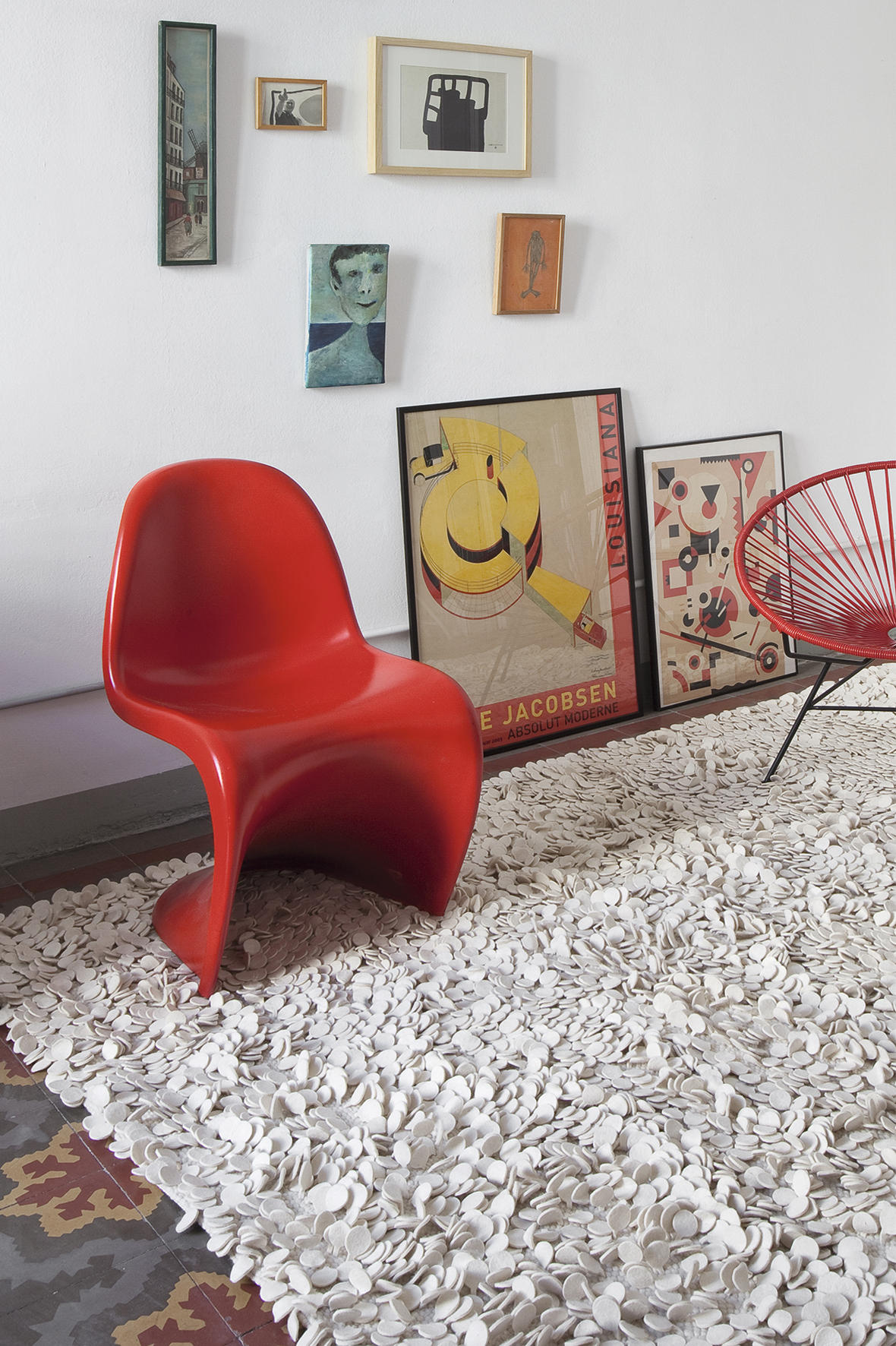 这款地毯的特点是,它能让你感受到地毯的体积和匀速运动,让你接触、抚摸和体验地毯。