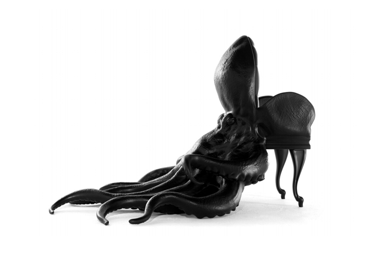 西班牙设计师 Maximo Riera 设计了一组包括章鱼、犀牛、海象、狮子等在内的 15 件动物造型座椅系列皮椅。这个系列的动物椅集合了不同的物种,从哺乳动物到爬行动物,甚至包括昆虫。每个设计都保留了动物的自然活力,同时又准确还原动物的外观特征。这些动物椅的初衷是一种尝试,希望以动物的栖息来反映和捕捉大自然的美,并向我们星球上的整个动物王国致敬。设计师除了表现动物的野性美,也在善意的提醒人们要维持生态的平衡,尤其对濒危物种多加关注,以实现人与自然的相互依赖和谐共存。Octopus Chair(章鱼椅)是动物椅藏品系列的第一件作品,它为作者在未来众多作品中的大胆表现奠定了基础。优雅是该作品最突出的特点。为了忠实表现动物的形体及其运动的自然高雅,必须为其搭建一个内部框架,以支撑其结构和表现良好姿态。正如同系列的其他作品一样,动物是作品中的唯一主角。我们常说人与自然互相依存,和平共处,章鱼椅的设计也很好地诠释了这一理念:它讲求动物与人的和谐,两者相互平等,谁都不需要依赖另一方。章鱼在这里不是装饰;它正如坐在上面的人一样,是椅子内在固有的本质。因此,章鱼椅完美地有体现了动物、椅子和人之间作为一个不可分割的整体所呈现出的一种奇特感觉。