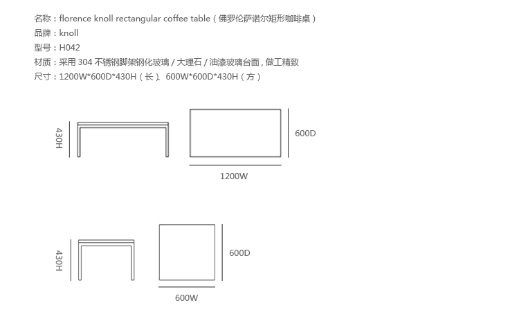 - 桌几|茶几/边几|办公家具|设计师家具|佛罗伦萨诺尔矩形咖啡桌
