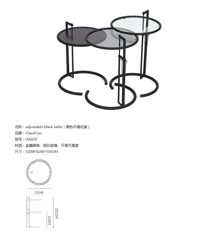 - 桌几|咖啡桌|办公家具|设计师家具|黑色可调式桌