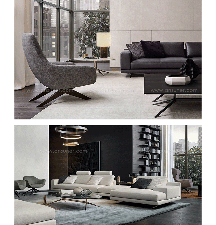 X形不锈钢脚优美稳定,超大桌面功能照样给空间通透呼吸感