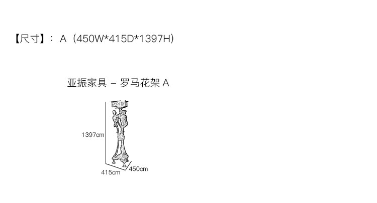 亚振家具 - 罗马花架 产品尺寸/示意图