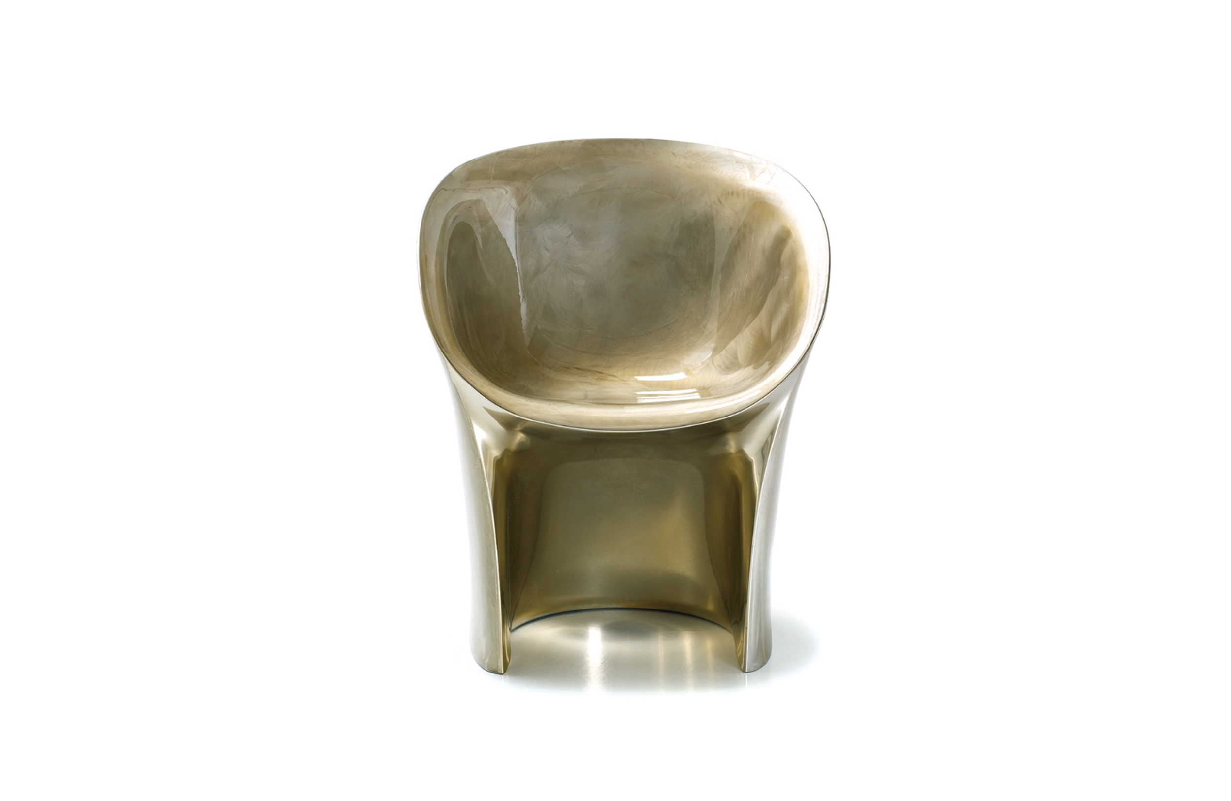 空隙和空间在完美的形式和谐中移动。移动的,流动的线条给椅子的轮廓似乎是转瞬即逝而不是固体,吸收和扩散一个微弱的,精致的辉光。在月球上,大小是一种错觉。从侧面看,座椅的曲线与底座的圆柱形结合在一起,让人联想起盛开的花朵,在这种严格的几何秩序下对有机的让步。从前面看,当光线出现和消失时,座位上的光芒就会散发出迷人的魔力。这种形式如此新颖的原因是来自不同层面的回响。它是一种新的三维形式,它加强了作品的时尚线条和月亮般的质感,这种质感源自于实体与消逝的相互作用。