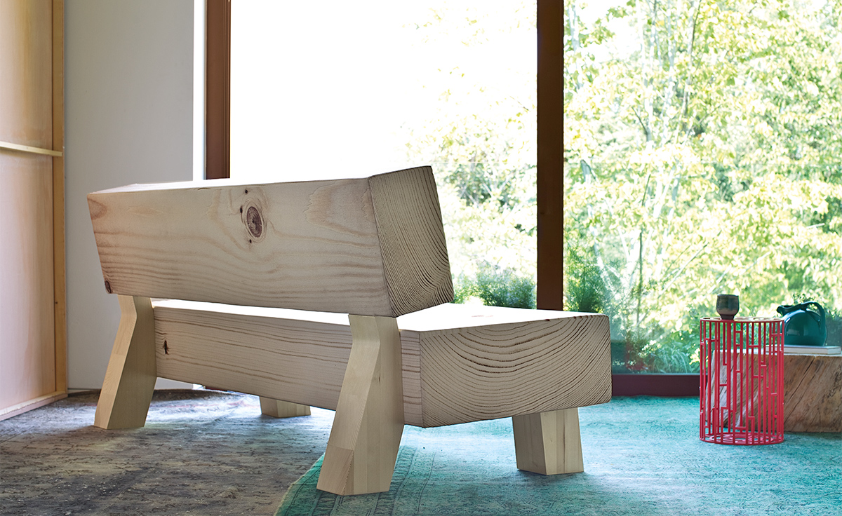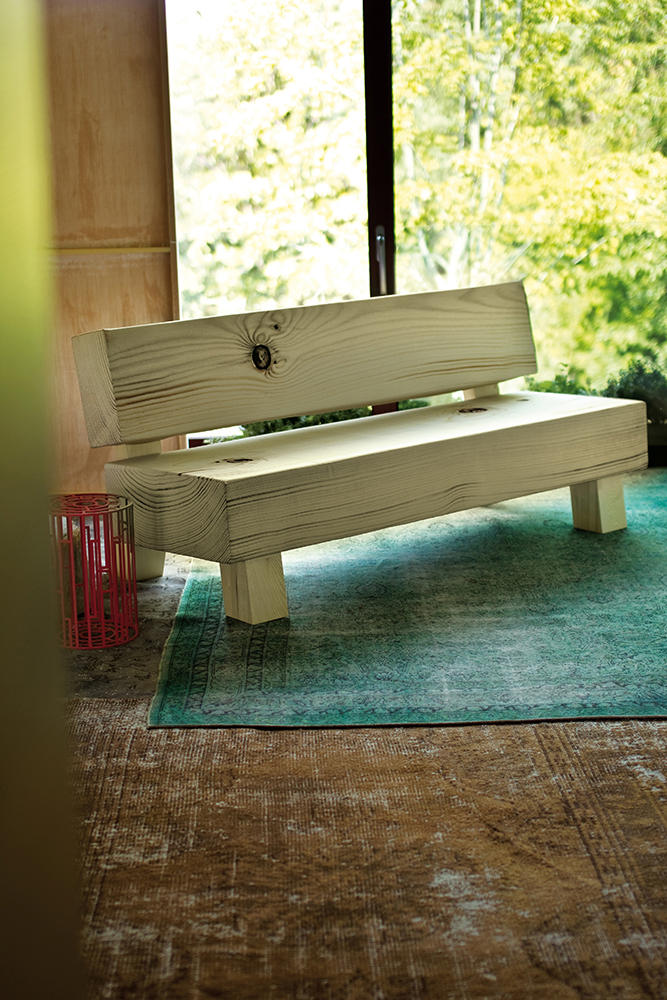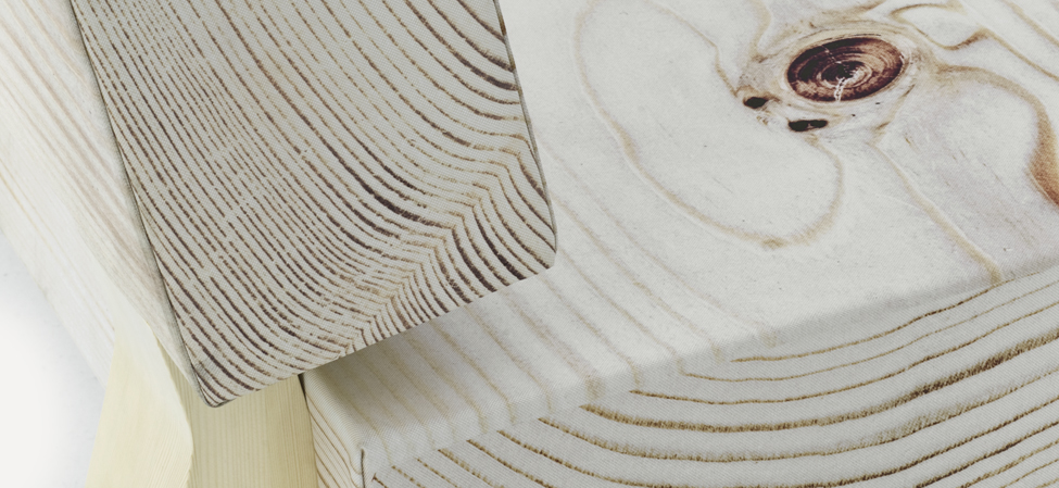 触摸它并感到惊讶:木头是柔软的,仅仅是一个超级逼真的数码照片打印的效果。在“树皮”下面是不变形,不同密度的泡沫,而框架是实木的,腿是在松木胶合板上,有可调节的高度滑翔。