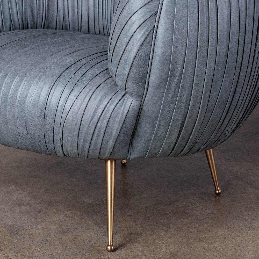 我们的标志性黄油褶皱皮革突出显示了这一标志性作品的戏剧性曲线。 手工制作的硬木框架采用双向销钉,配有8向手动弹簧,可延长使用寿命和性能。