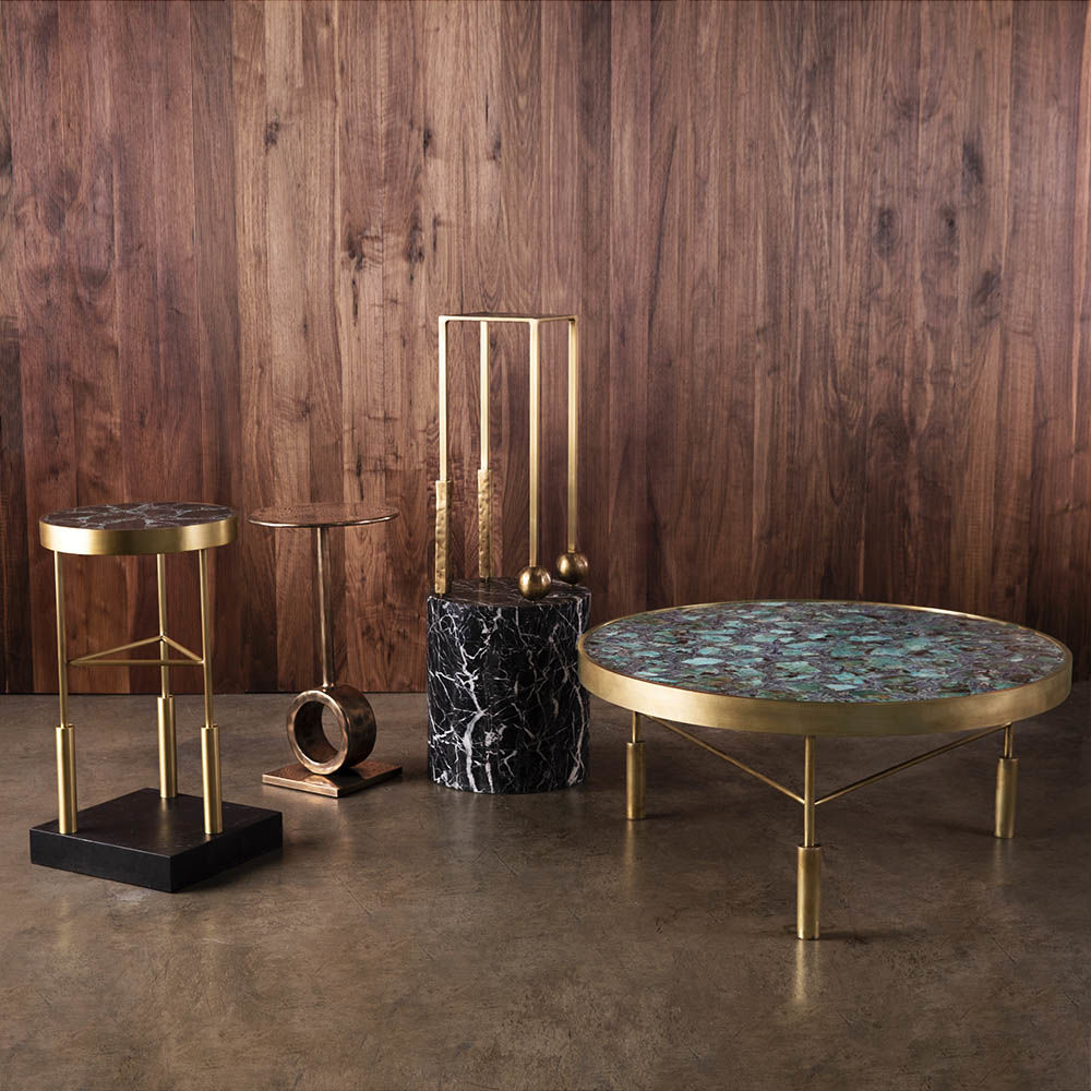 Sedona Side Table(塞多纳边几)有一系列镶嵌和抛光的半宝石,如玫瑰石英的菱锰矿,以及抛光黄铜框架的绿松石云母板岩。 每件作品都是独一无二。
