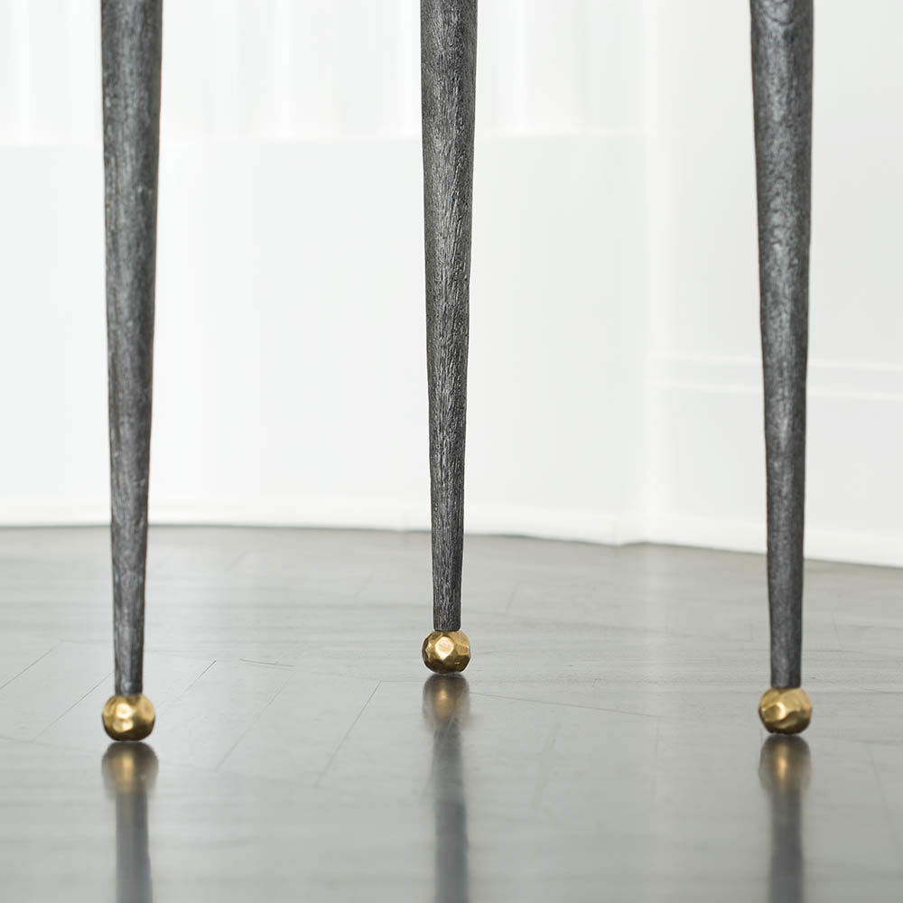 可能是我们所有边几中最复杂的,Garcon桌子有三条腿用黑色铝铸造,逐渐变成黄铜球脚。 腿部的纹理就像雕刻的木头和坚固的青铜顶部,带有抛光的青铜色,具有手工锻造的雕塑品质。