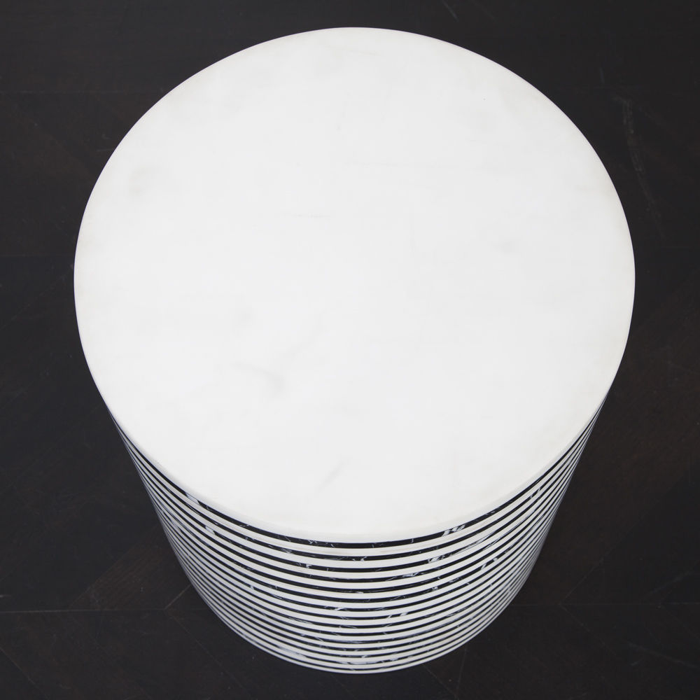 Lineage凳子融合了混合大理石和建筑构造形式,体现了艺术与功能的现代二元性。 这款雕塑般的整体式凳子采用交替层叠的天然黑色玛奎那和白色大理石,经过磨光处理。