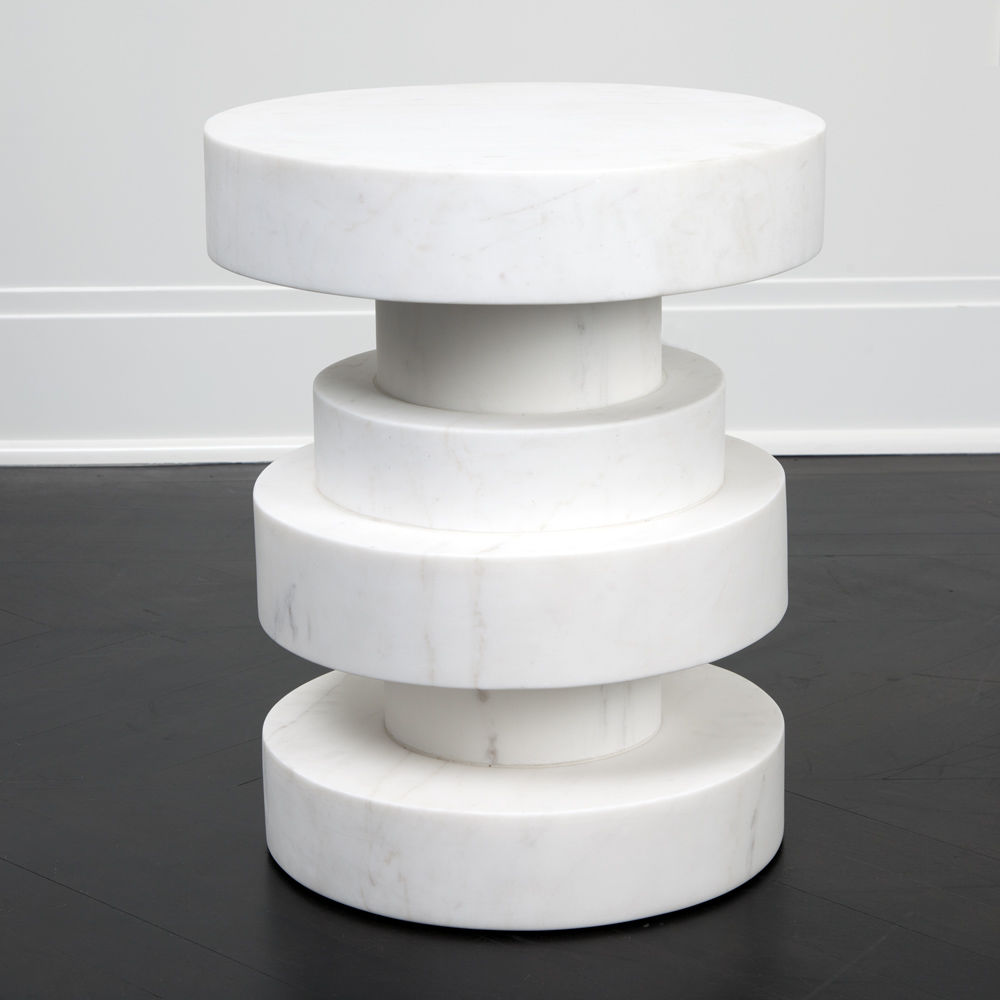 Apollo凳子,堆叠的大理石,非常适合户外或室内座位,鸡尾酒桌或边桌,或雕塑装饰件。 黑色大理石经过磨光和密封,以增加丰富感。