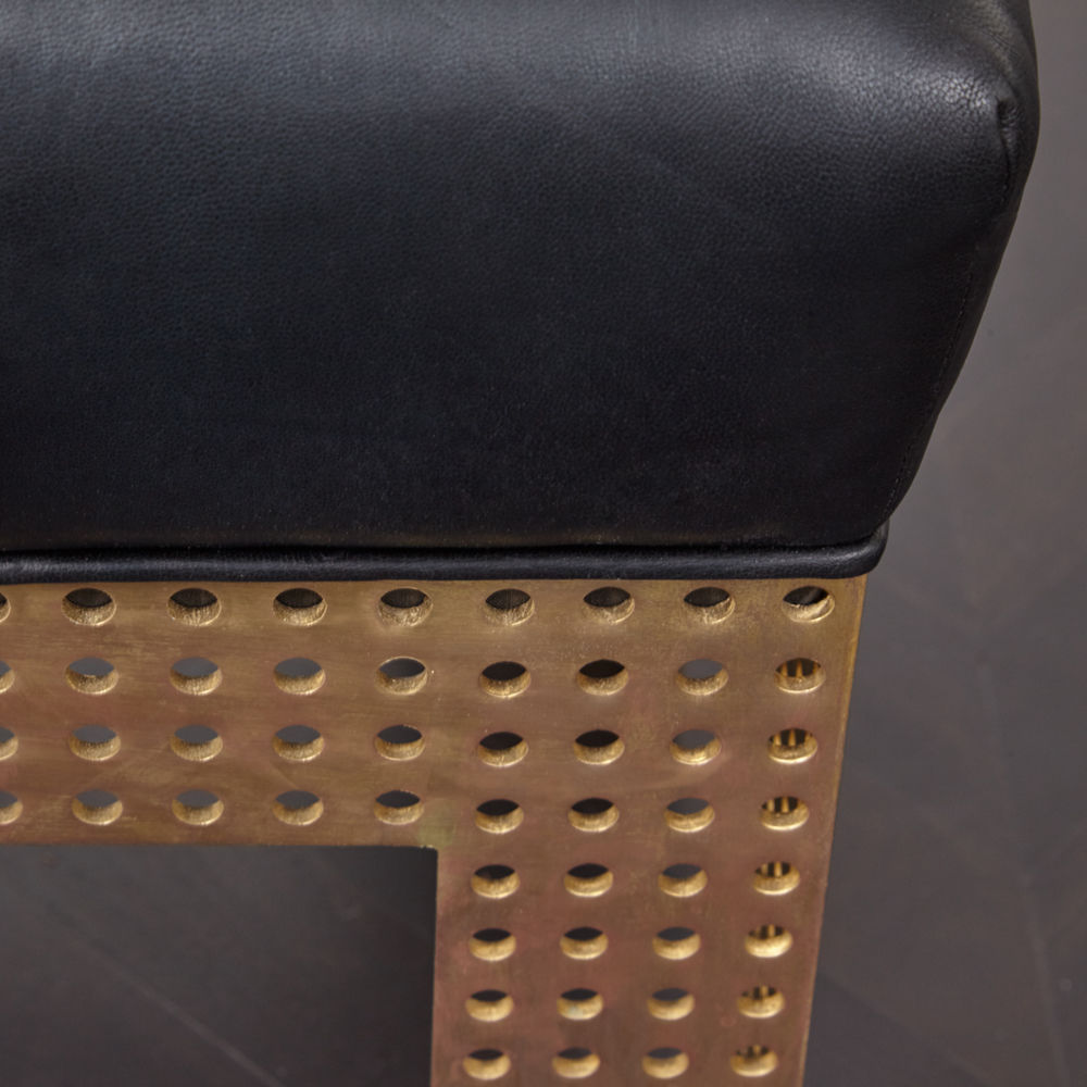 来自我们的标志性精密系列的未经剔除的抛光青铜搭配奢华的皮革内饰,营造出性感的现代经典。 穿孔细节赋予这件作品独特的优雅,使其成为完美的重点长凳或脚凳。精密脚凳框架由天然青铜制,可以用各种不同的皮革或面料装饰。