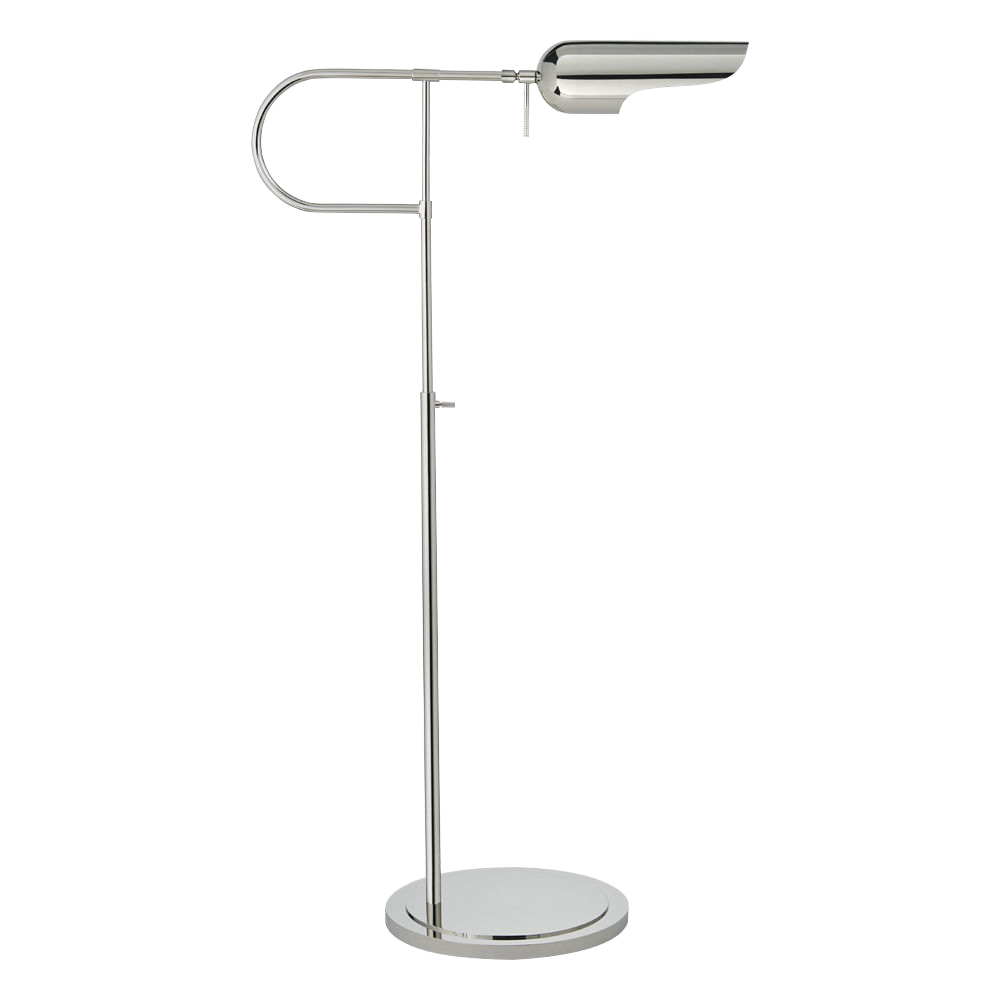 Lucien可调节落地灯将工作灯的多功能性转化为精致和动态的环境。 这款药房式落地灯有古董黄铜或抛光镍。