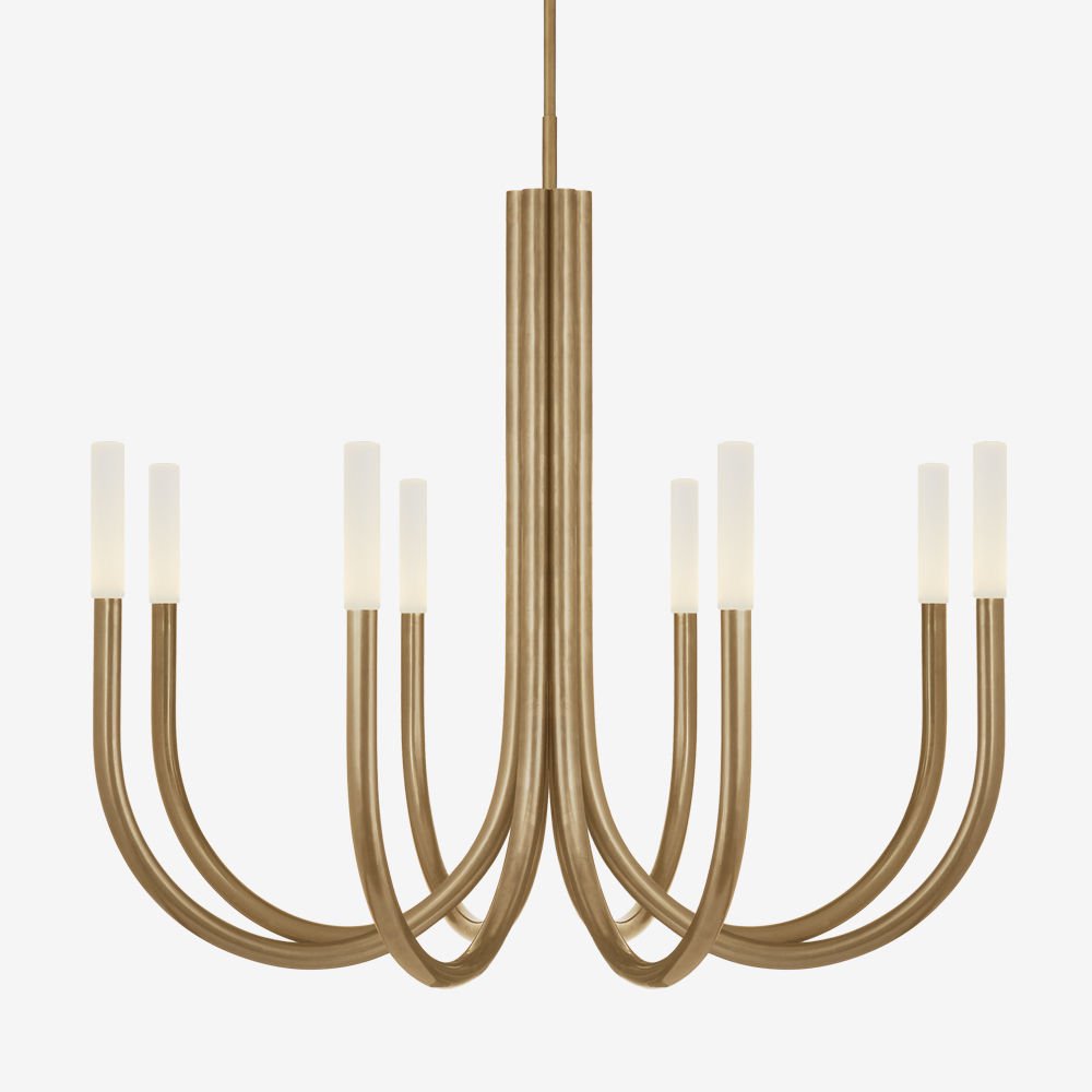 Rousseau Chandelier(卢梭枝形吊灯)是现代设计和极简主义形式的标志性融合。 这款枝形吊灯有青铜色,古董黄铜色或抛光镍色和蚀刻水晶镜片,适合潮湿环境。