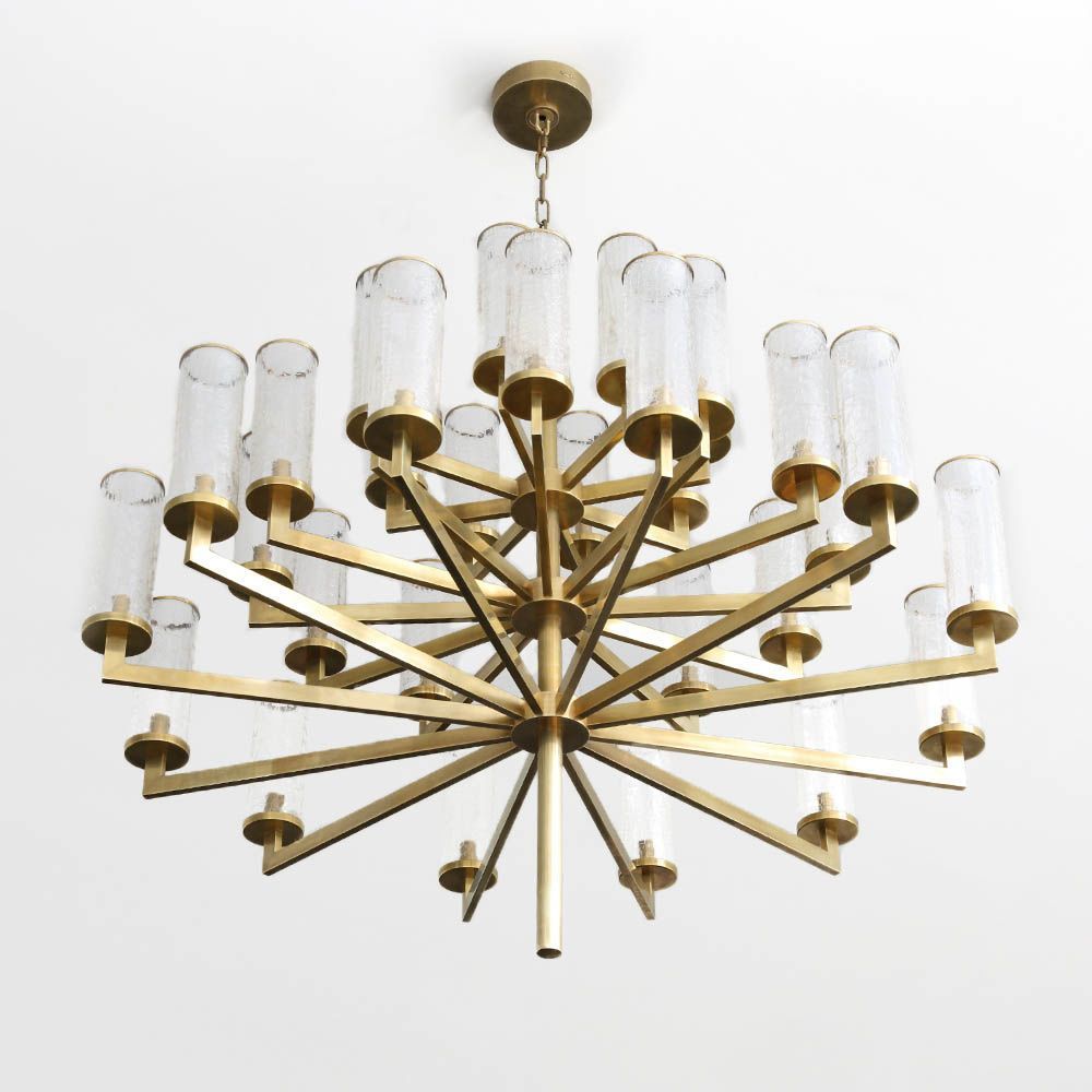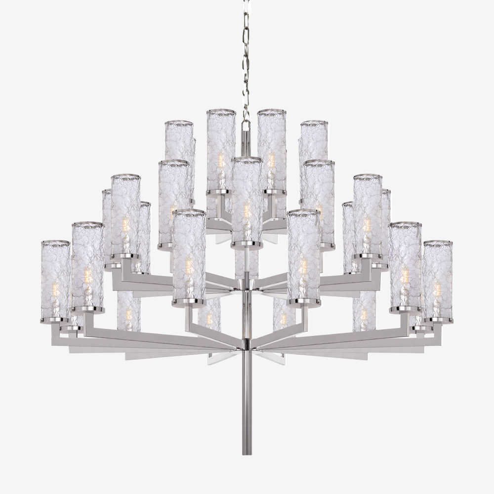 这款现代主义灯具采用凯利的标志性碎裂玻璃技术,引领她对重复、活泼和雕塑形式的热爱。 天然青铜和铸造纹理玻璃赋予这些设计灵魂的建筑和经典的区别。 采用古董抛光黄铜,青铜和抛光镍与裂纹玻璃。