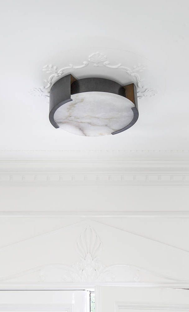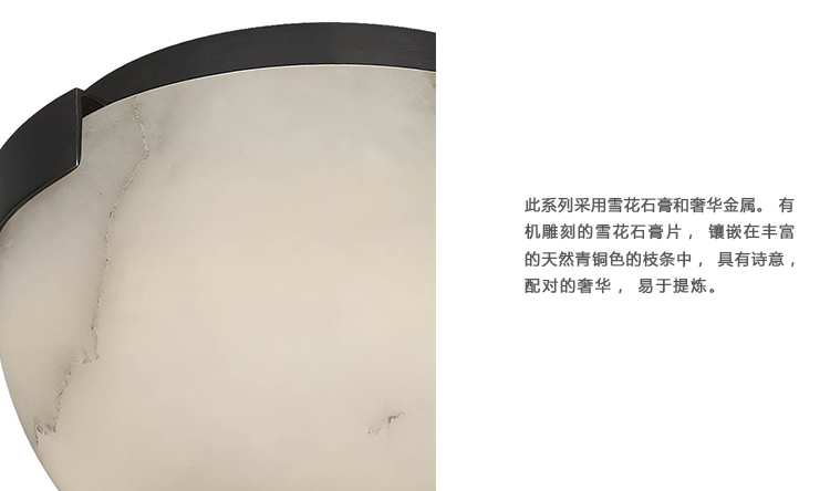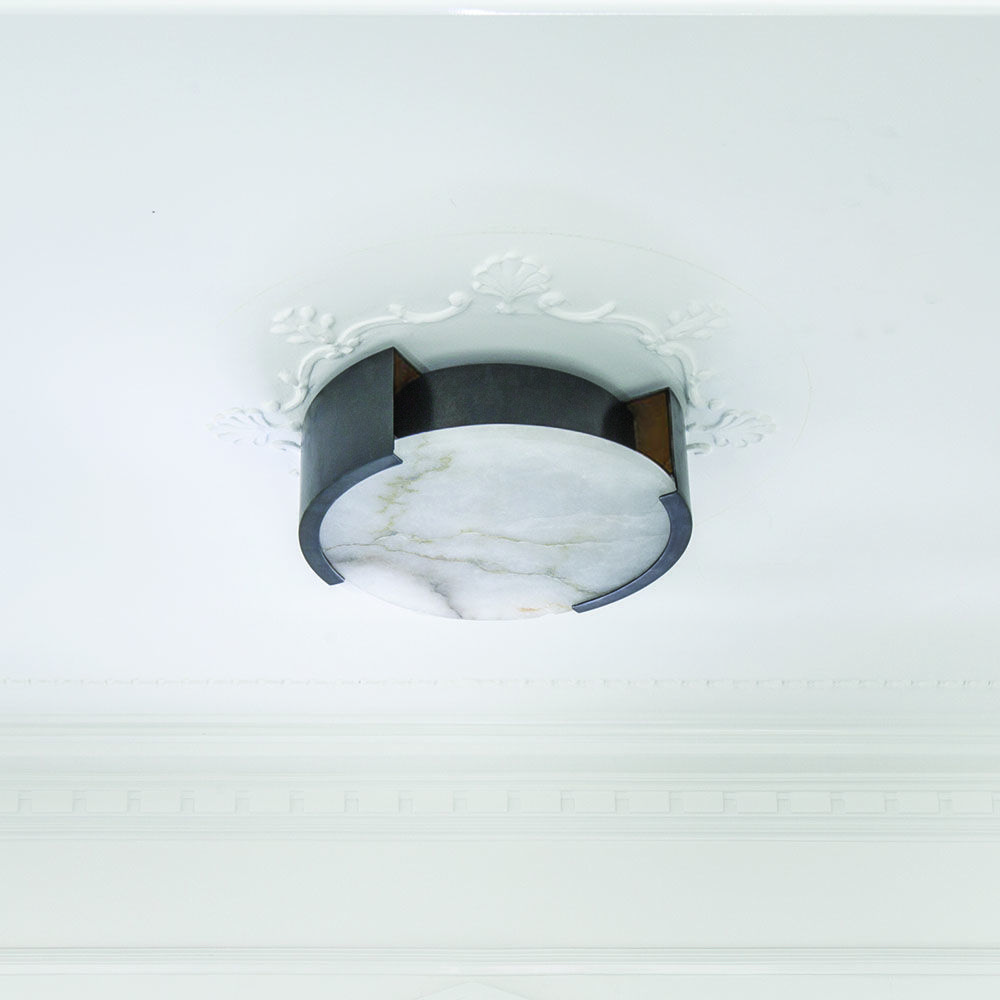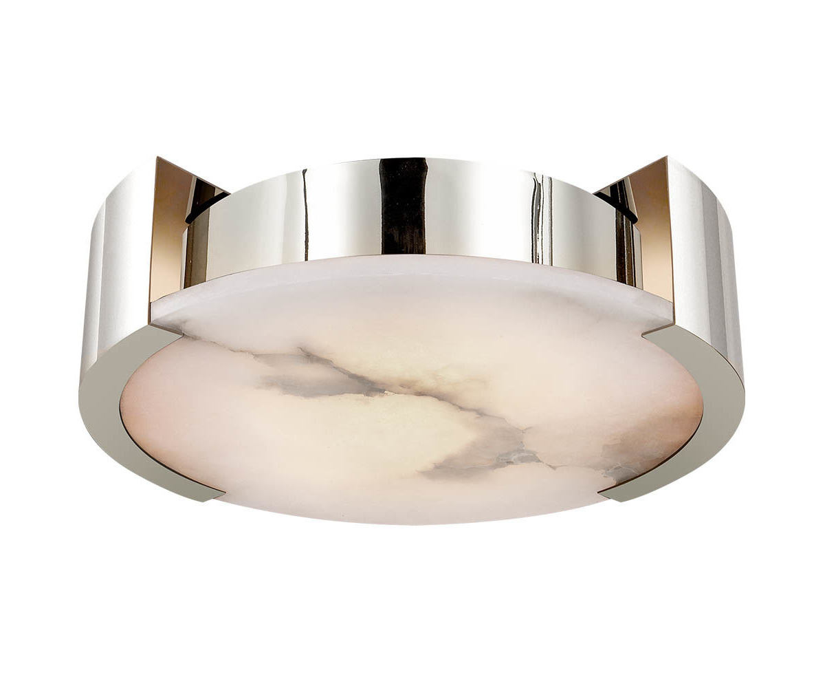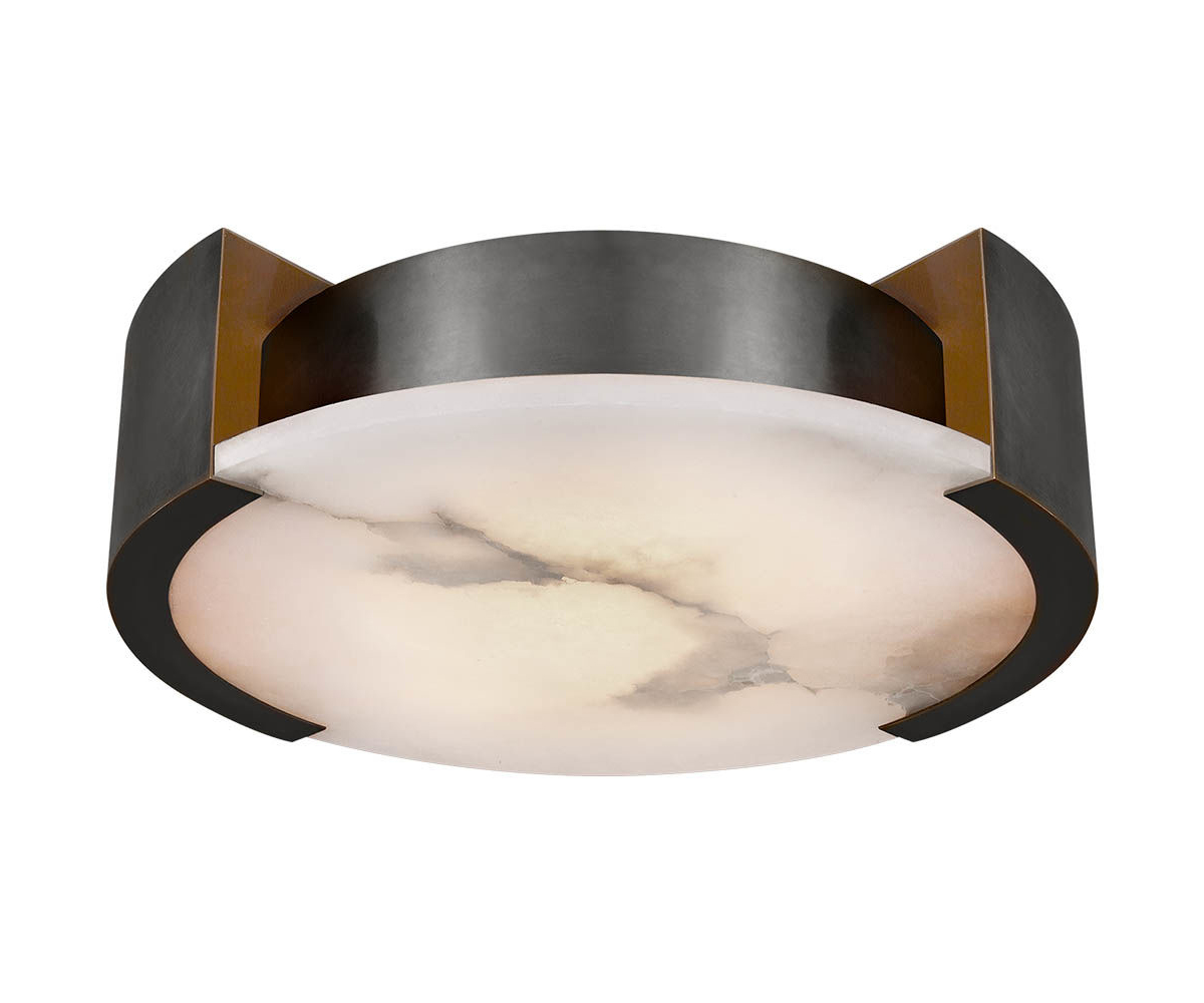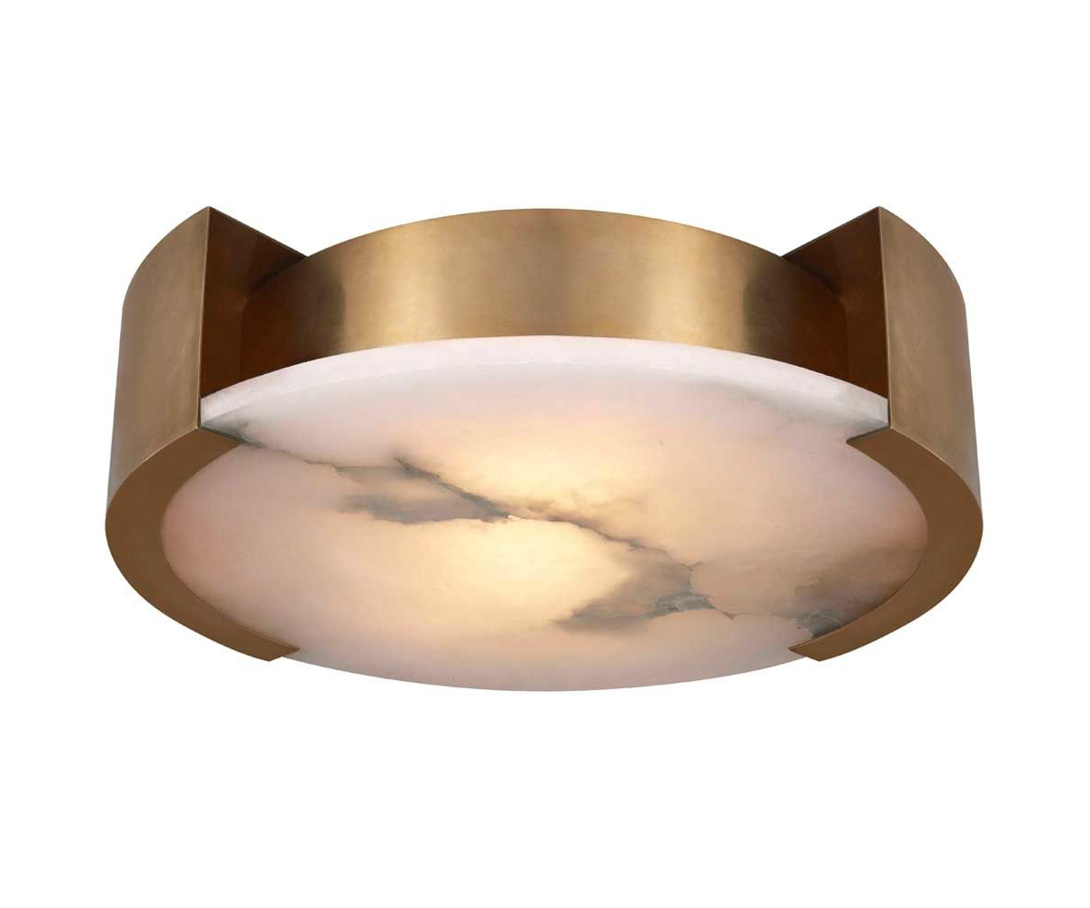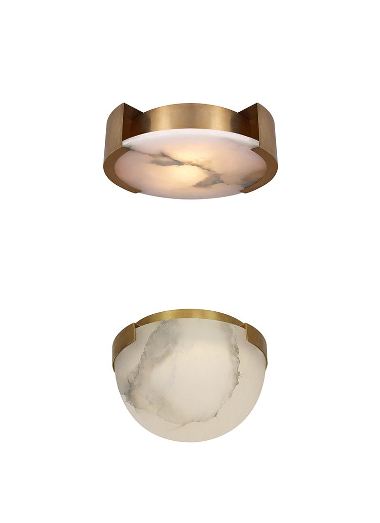 Melange Flush Mount(Melange吸顶灯)巧妙地将天然雪花石膏和流线型金属细节与流线型几何形状相结合,散发出现代气息,同时强调天然石材的美感。 这款夹具采用手工雕刻的天然雪花石膏,配有古董黄铜,青铜或抛光镍细节,适合潮湿环境。