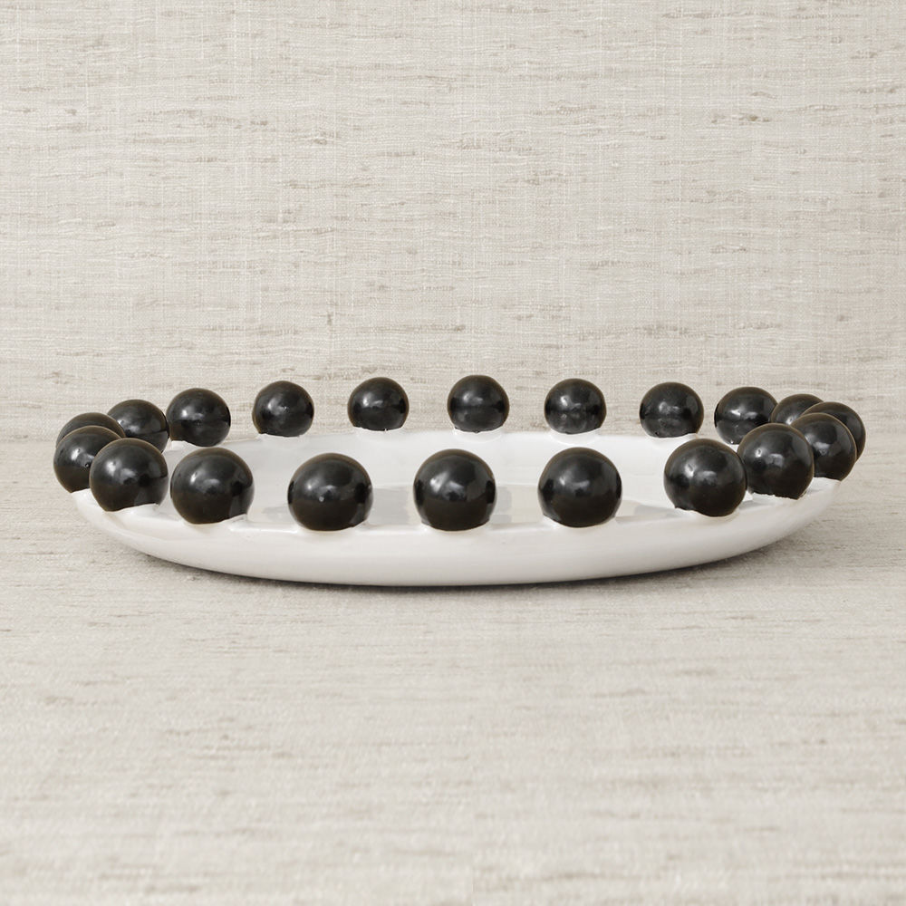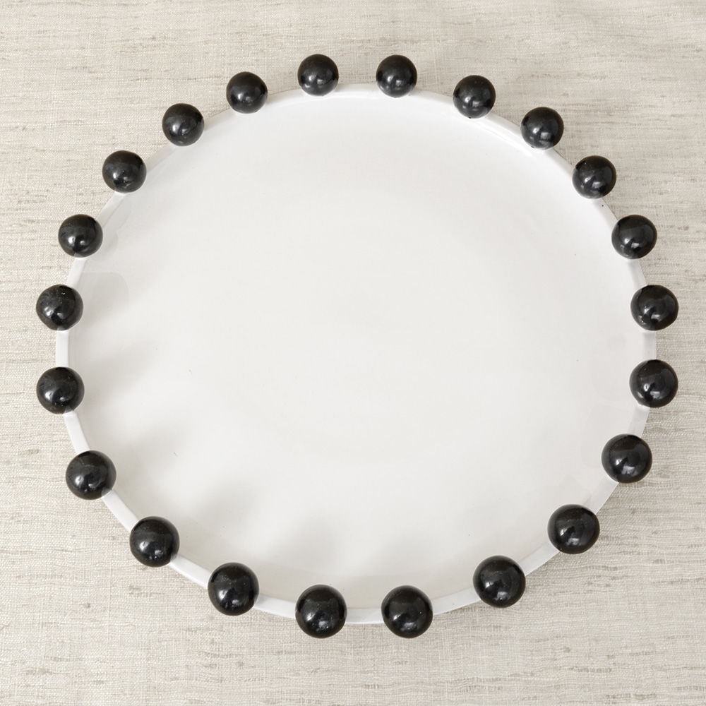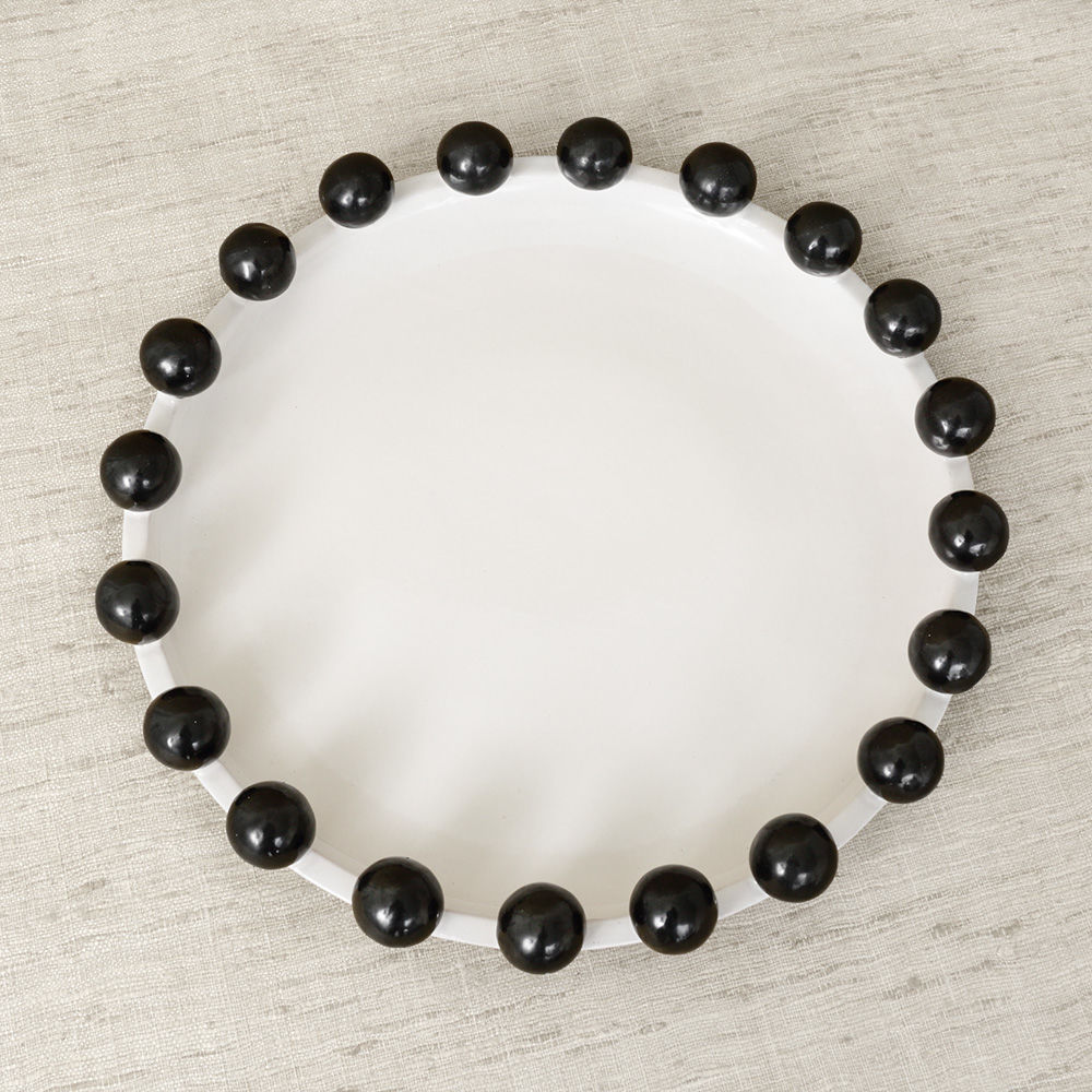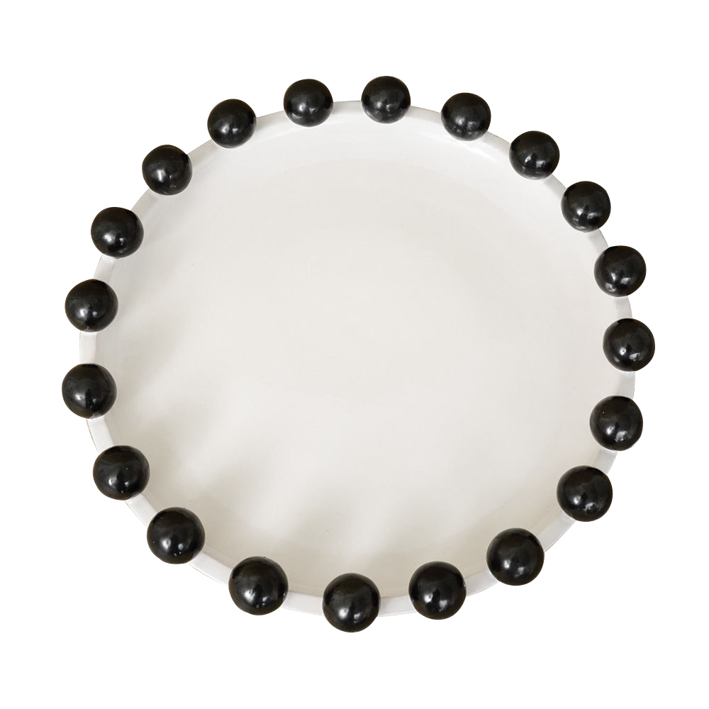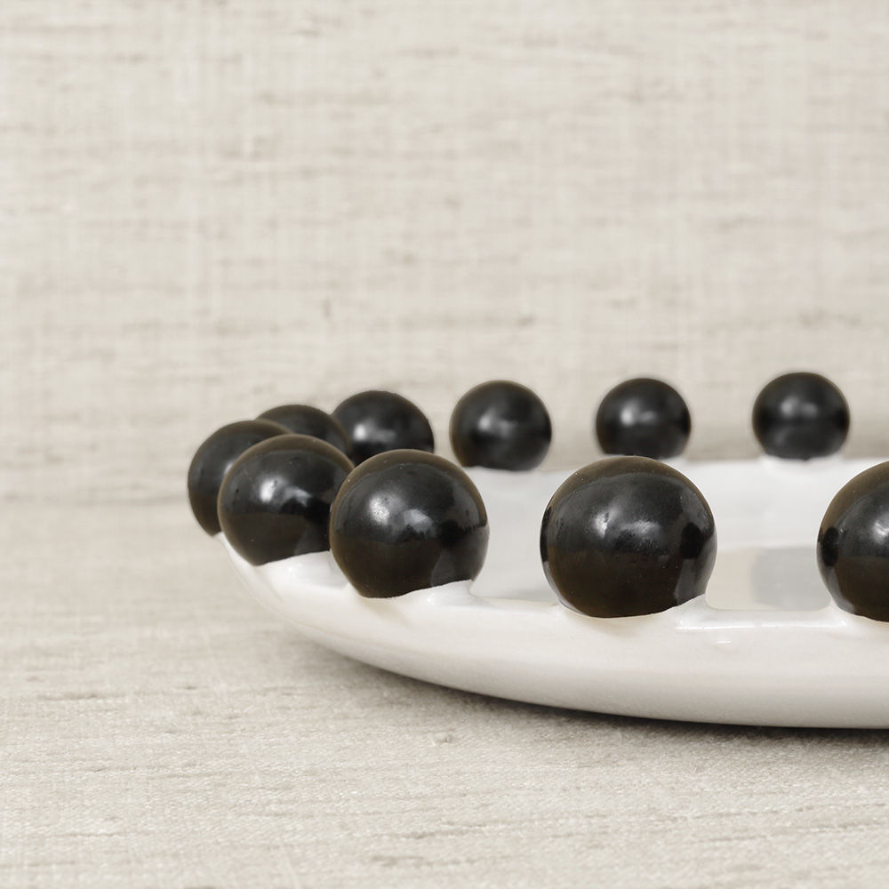 这是一款独特的白色陶瓷餐具,配有大型乌木装饰球,边缘饰有令人兴奋的细节。 从Noir和Blanc系列的大盘中嵌入,但也可作为独立的作品。 非常适合娱乐或在咖啡桌上。
