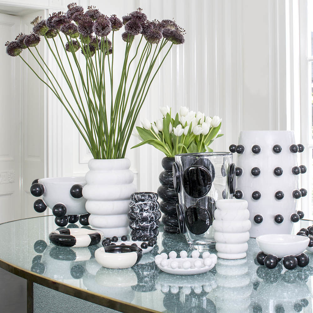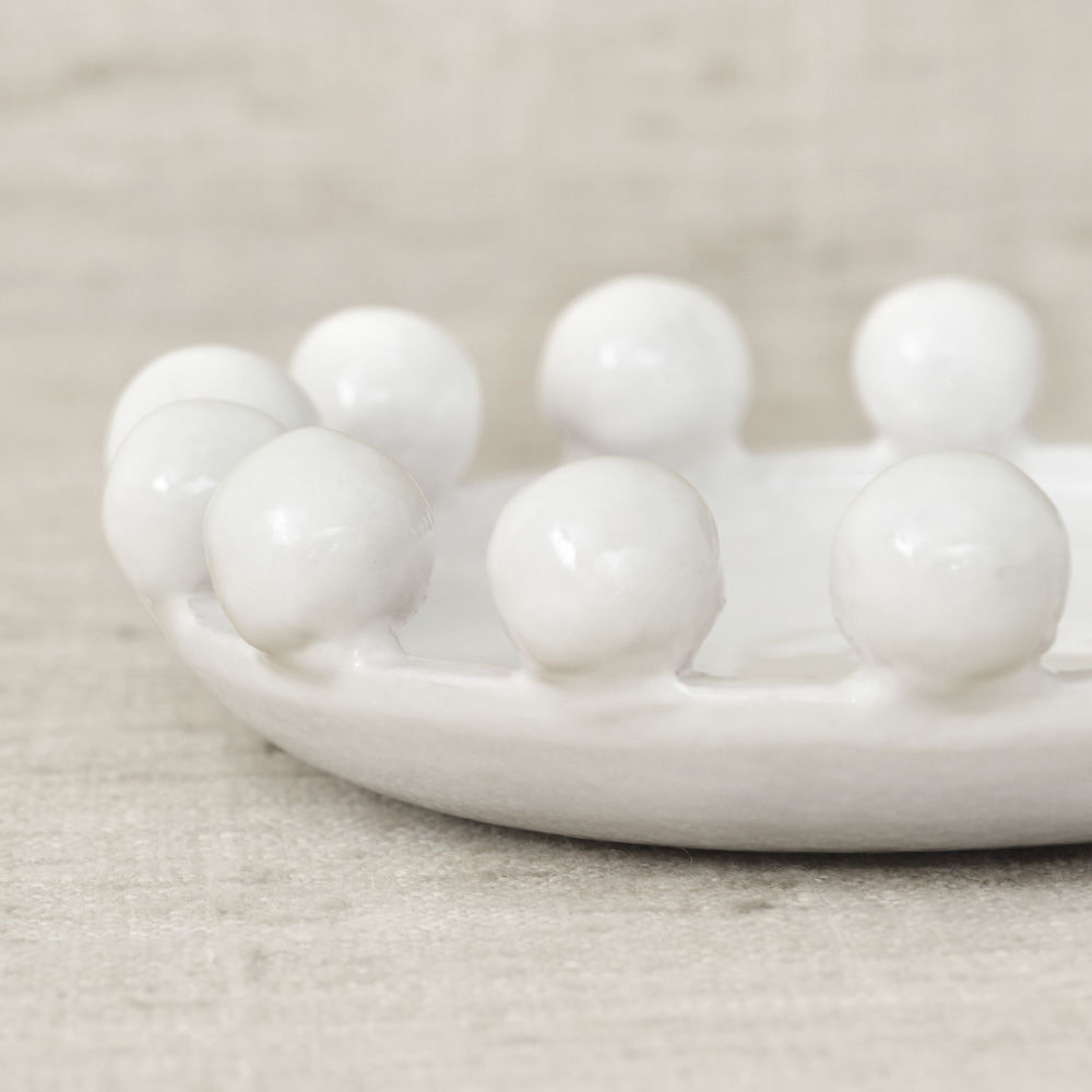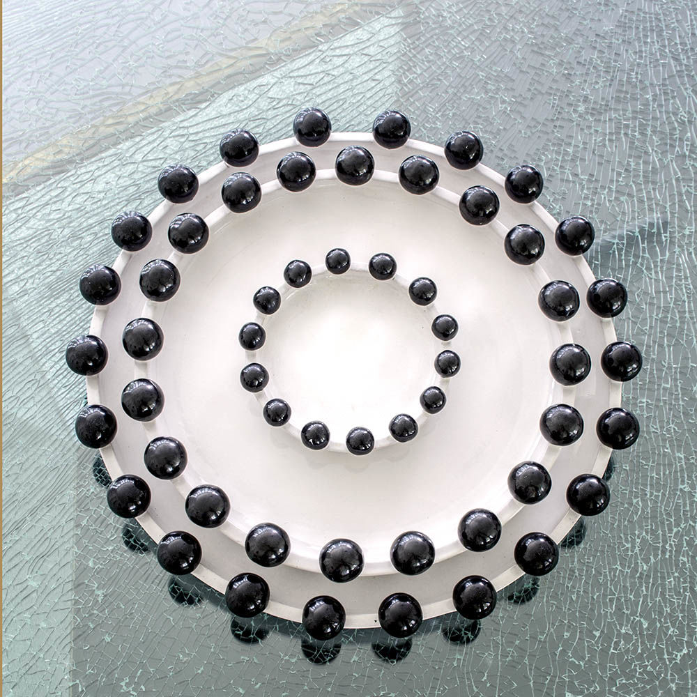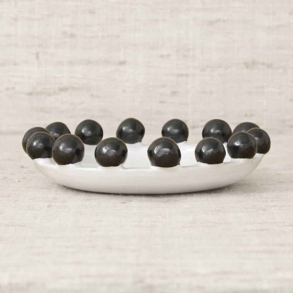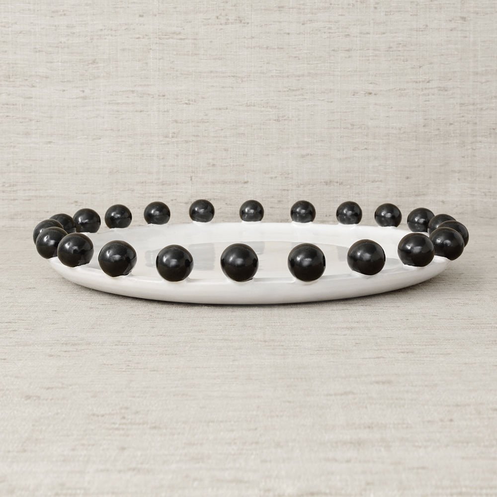 这是一款独特的白色陶瓷餐具,配有大型乌木装饰球,边缘饰有令人兴奋的细节。 从Noir和Blanc系列的大盘中嵌入,但也可作为独立的作品。 非常适合娱乐或在咖啡桌上。