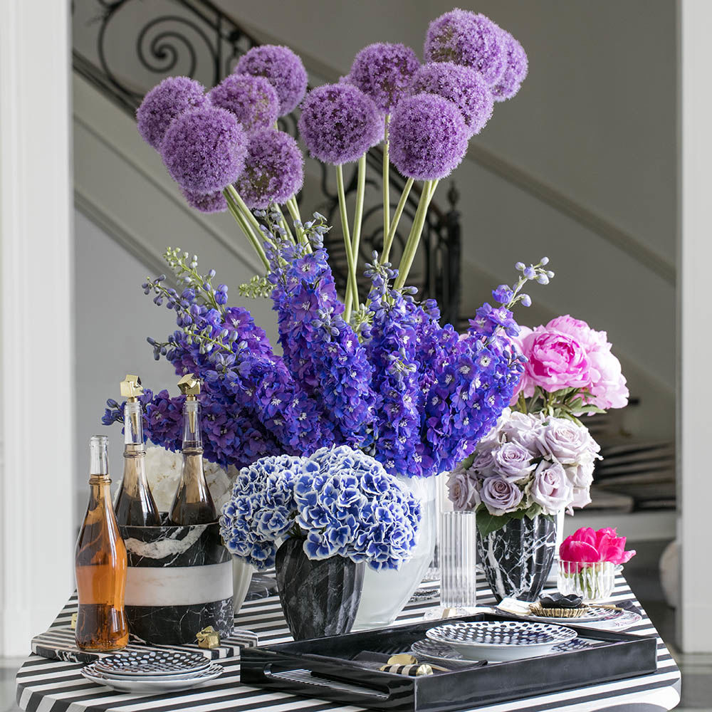 白色卡拉卡塔和黑色马奎纳大理石手工雕刻大理石拼盘的灵感来自黑白条纹图案,是一款大胆的宣言。 这款拼盘采用手工挑选的铸造青铜作为细节,非常适合豪华娱乐。