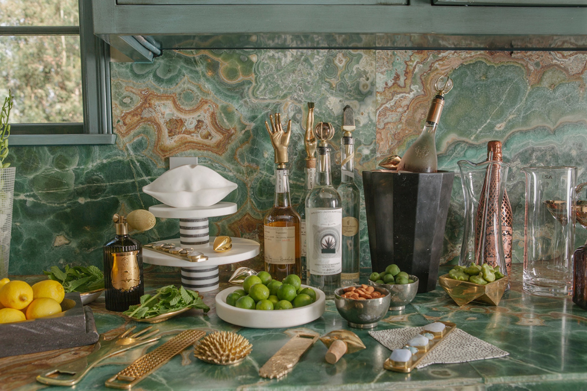 这款实心黄铜葡萄酒塞在洛杉矶手工雕刻,与Kelly's Acolyte系列酒吧和娱乐用品相得益彰。