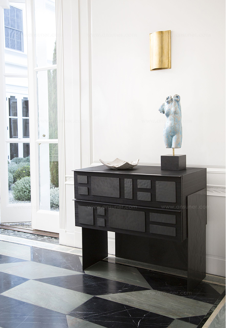 这款桌面雕塑描绘了一款经典的女性躯干,采用手工浇筑的混凝土。 混凝土中充满了颜料,使每种形状都具有完全独特的色偏。 每个雕塑都坐落在坚固的黑色Marquina大理石底座上,并与坚固的抛光青铜杆相连。