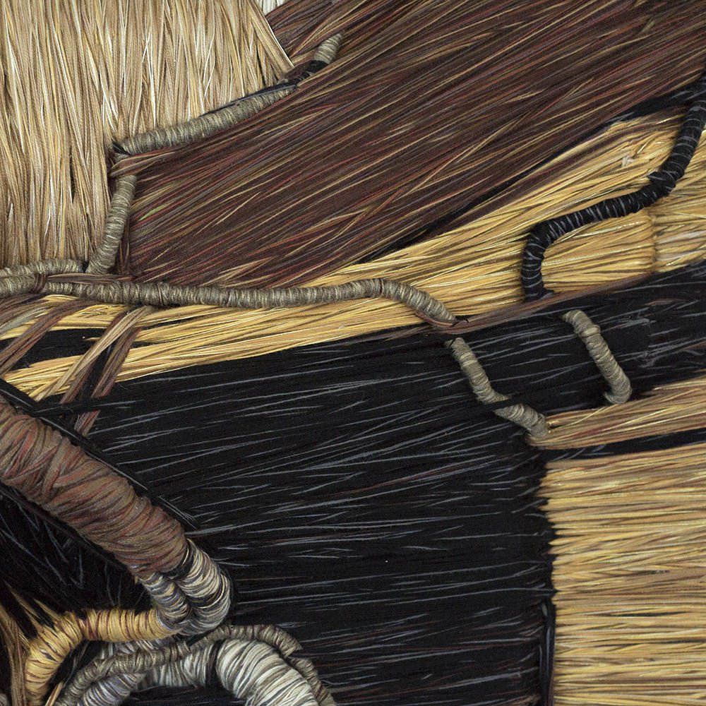 由Ruben Marroquin设计的缠结纤维艺术壁挂结合精细埃及棉,拉伸比利时亚麻,日本丝绸,青铜金属纱线,金属纤维和木制工业绳索。 这些戏剧性的艺术品是通过手工编织纤维纤维,将其应用于艺术家手工制作的铝制框架而创造出来的。