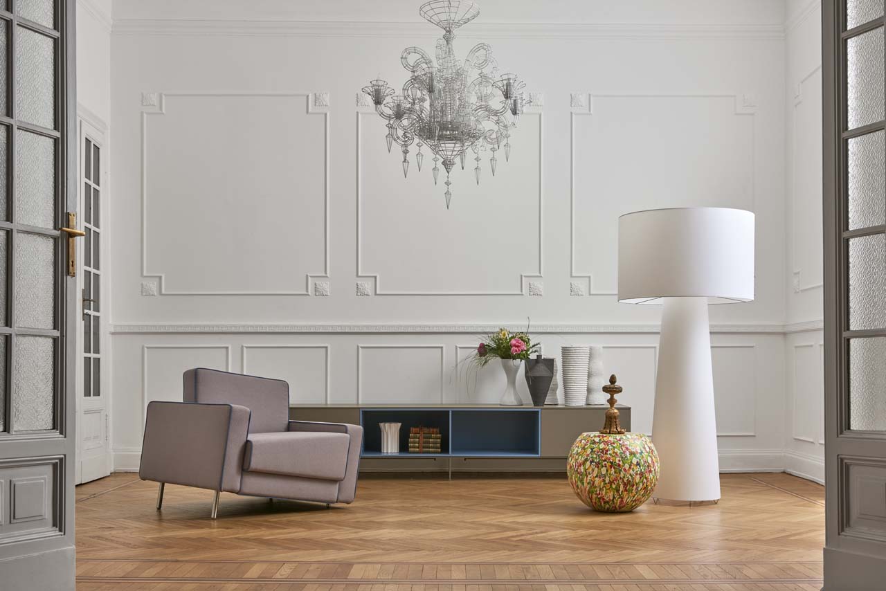 适应当代世界突然变化的精神激发了Fabio Novembre设计Adaptation系列的灵感。 一个引人注目的视觉冲击标志着这个项目与由靠背的斜线形成的视错觉,模拟下降效果。 不同高度的可变支腿系统和逐渐增大尺寸的垫子使座椅底座与地面完全平行,确保了舒适度。 沙发和扶手椅采用织物和皮革制成,采用以下对比色饰面,增强了物体几何形状:黑色,白色,灰色,红色,酒红色,空军蓝。