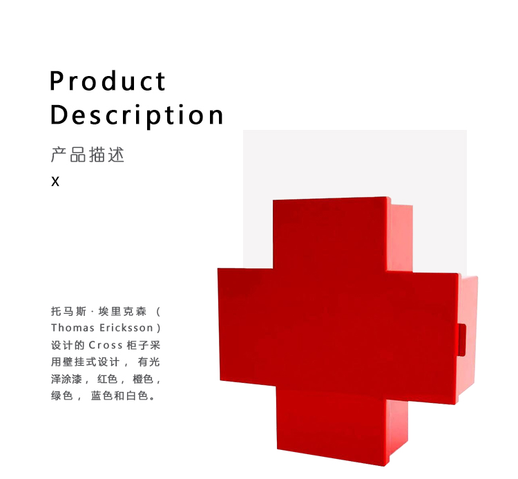 托马斯·埃里克森(Thomas Ericksson)设计的Cross柜子采用壁挂式设计,有光泽涂漆,红色,橙色,绿色,蓝色和白色。