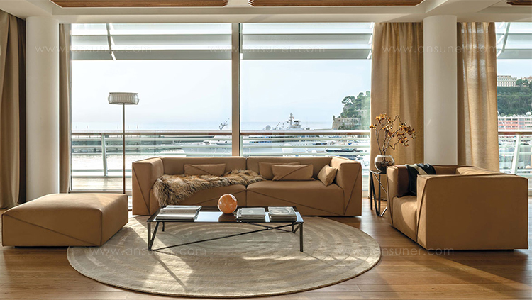 Diagonal is the new contemporary seating system comprised of compact elements that bring out its comfort. The stitches bestow a strong expressive character, thanks to the play of diagonal lines and colour pairings in the detailing. A tailor-made offering that come in multiple versions: thickened nabuk with raw-cut edges, in leather or inlaid fabric with tone-on-tone or contrasting inserts.