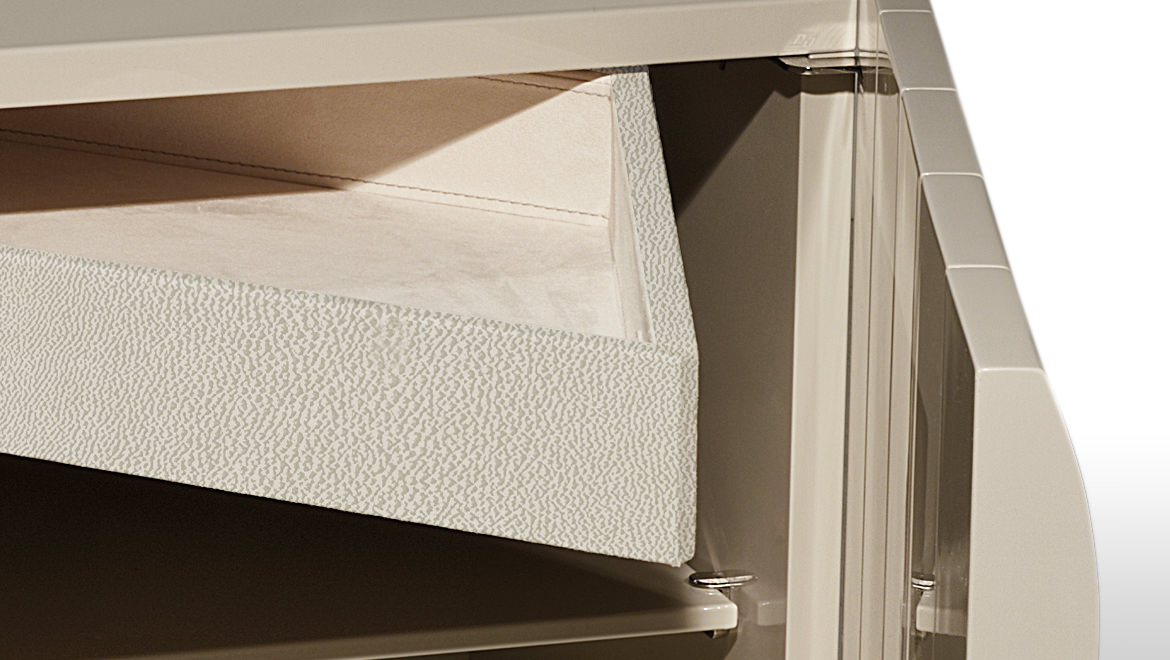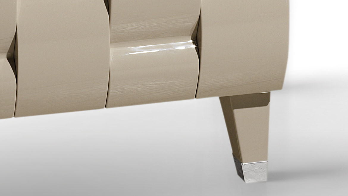 SHUTTER / DRAWER Wood with wavy effect three-dimensional pattern, covered in leather or with glossy lacquered finishing