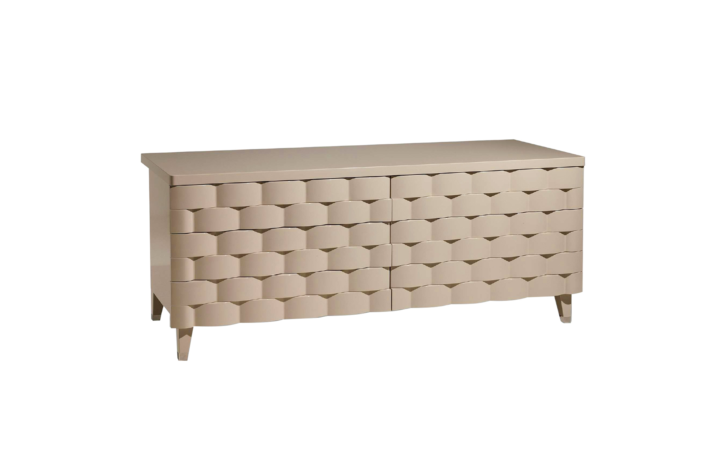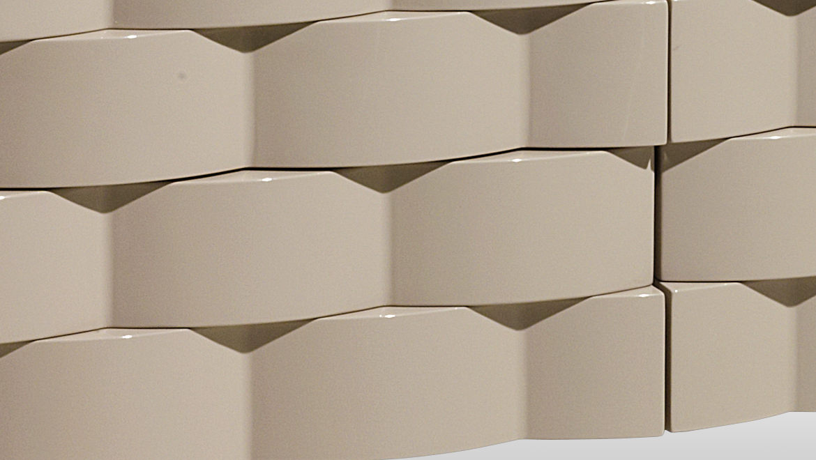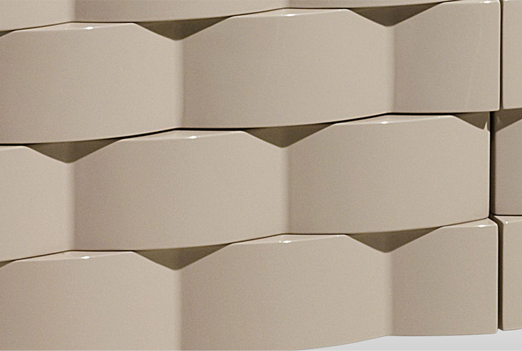 DRAWERS Wood with wavy effect tri-dimensional pattern glossy lacquered or covered in coordinated leather