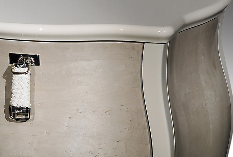finishing or with special "stretch" velvet. Version with drawers and lateral sides covered in leather or veneered Erable polished with transparent glossy finishing