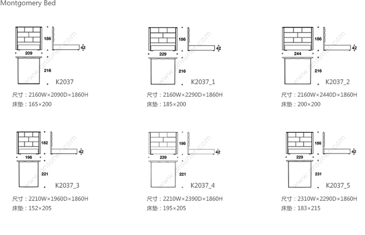 Montgomery Bed 系列尺寸/示意图