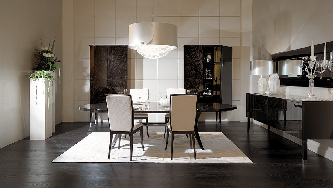 OPTIONAL Dedalo 2 with internal drawer veneered Ebony Macassar, inner in microfibre