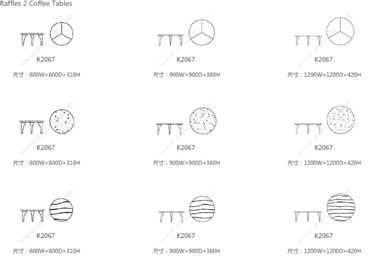 Raffles 2 Coffee Tables 系列尺寸/示意图
