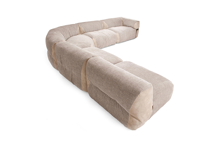 由Manzoni & Tapinassi设计的莲花沙发,可以让人对“组合沙发”的概念产生最大的影响,因为它可以根据自己的品味和所处的环境组合在一起。尽管它的背部很低,但它柔软而圆润的线条,以及它的衬垫,包裹着身体,给人极大的安慰。沙发的侧面,被云母棕色着色的镀锌的钛制金属框架阻断。角落里的补丁是一种装饰性的图案,因为它们可以根据自己的喜好个性化,选择面料或皮革。