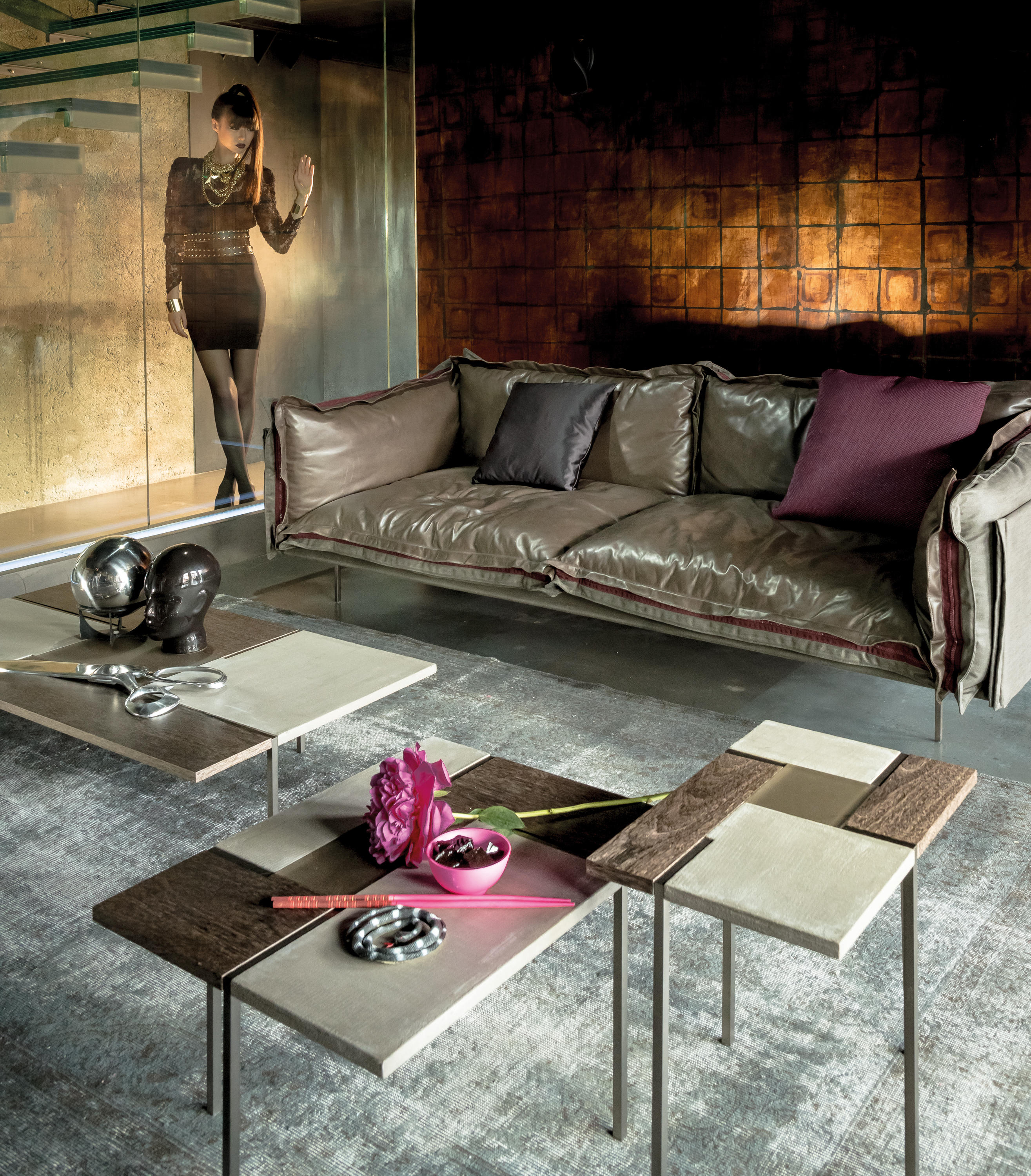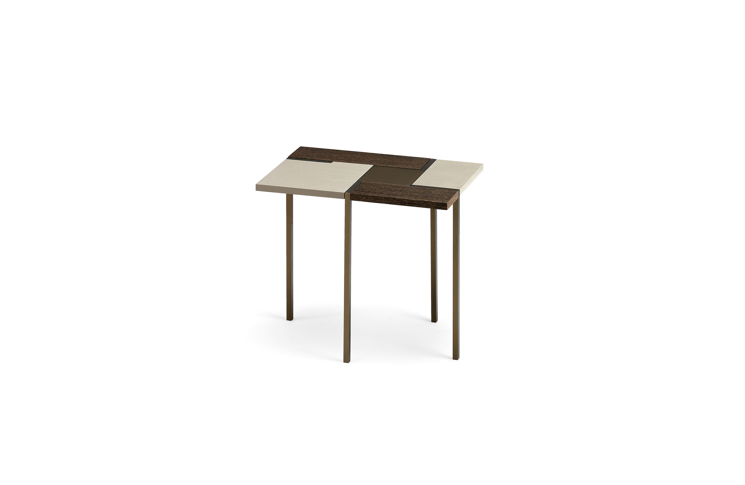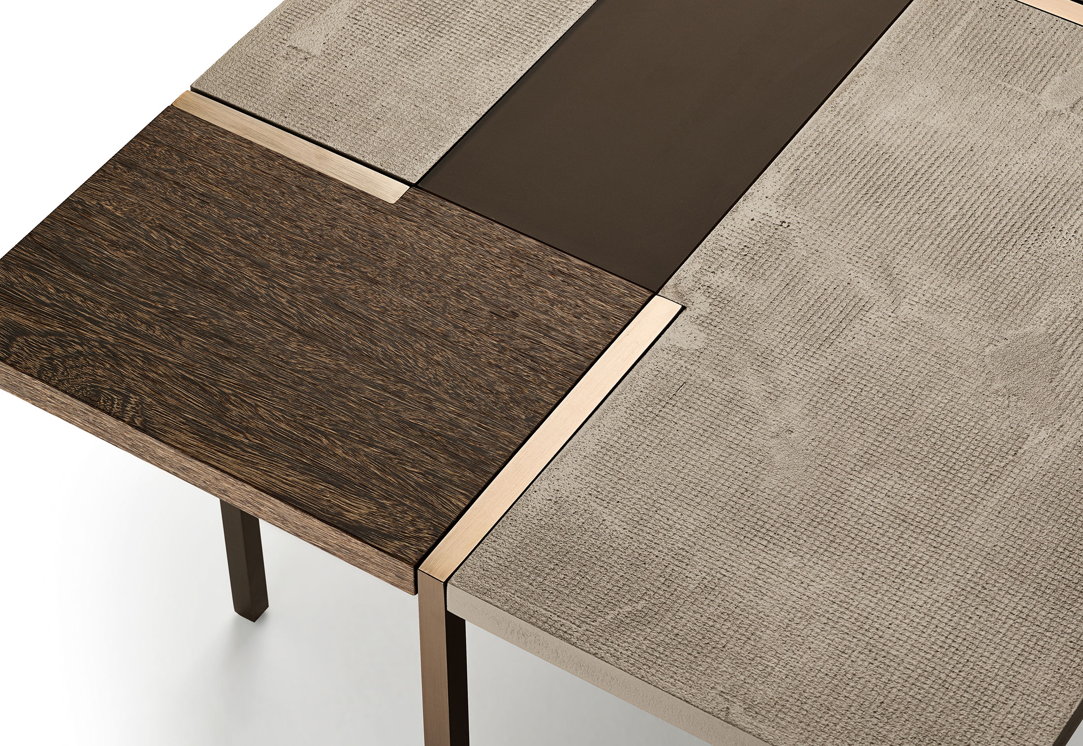 线性和严谨是Stijl表格的精髓,具有强烈的视觉冲击力和不同尺寸矩形组成的特定几何形状。采用中性色调和不同的材料,如水晶,水泥和木材的特性使其成为非常灵活的。正方形的金属腿, 棕色、 黄铜或钛制的, 都集中在桌面上。