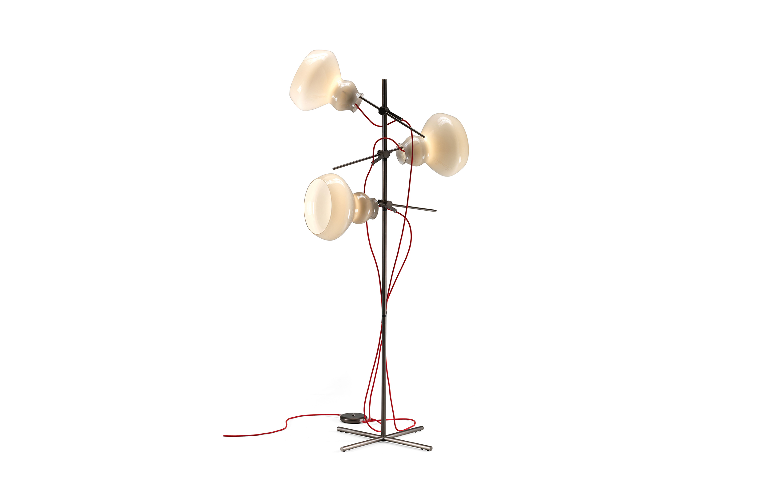 在现代和经典的环境中都很理想,个性也很丰富,这个斑点灯被设计成一个毫无疑问的原创物品。由于对大自然的蜿蜒形状的重新诠释,它在任何环境中都产生了一种原始的景观效果。高度可调节、支架可以旋转的金属阀杆支撑着三种不同颜色的玻璃灯罩,它能均匀地、定向地发光,且可以调节光的强度。
