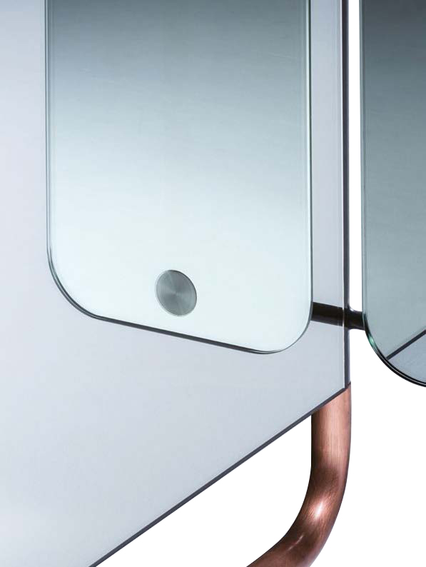 Cantone 镜子系列灵感源于 20 世纪 70、80 年代意大利的酒吧,在那些酒吧的吧台上总有一面镜子,好让你能看清你背后发生了什么。这就是镜子的妙处——当你置身于一个空间,你的眼睛只能看到单独的一面,而镜子,能让你看周围,空间感因此加深了。