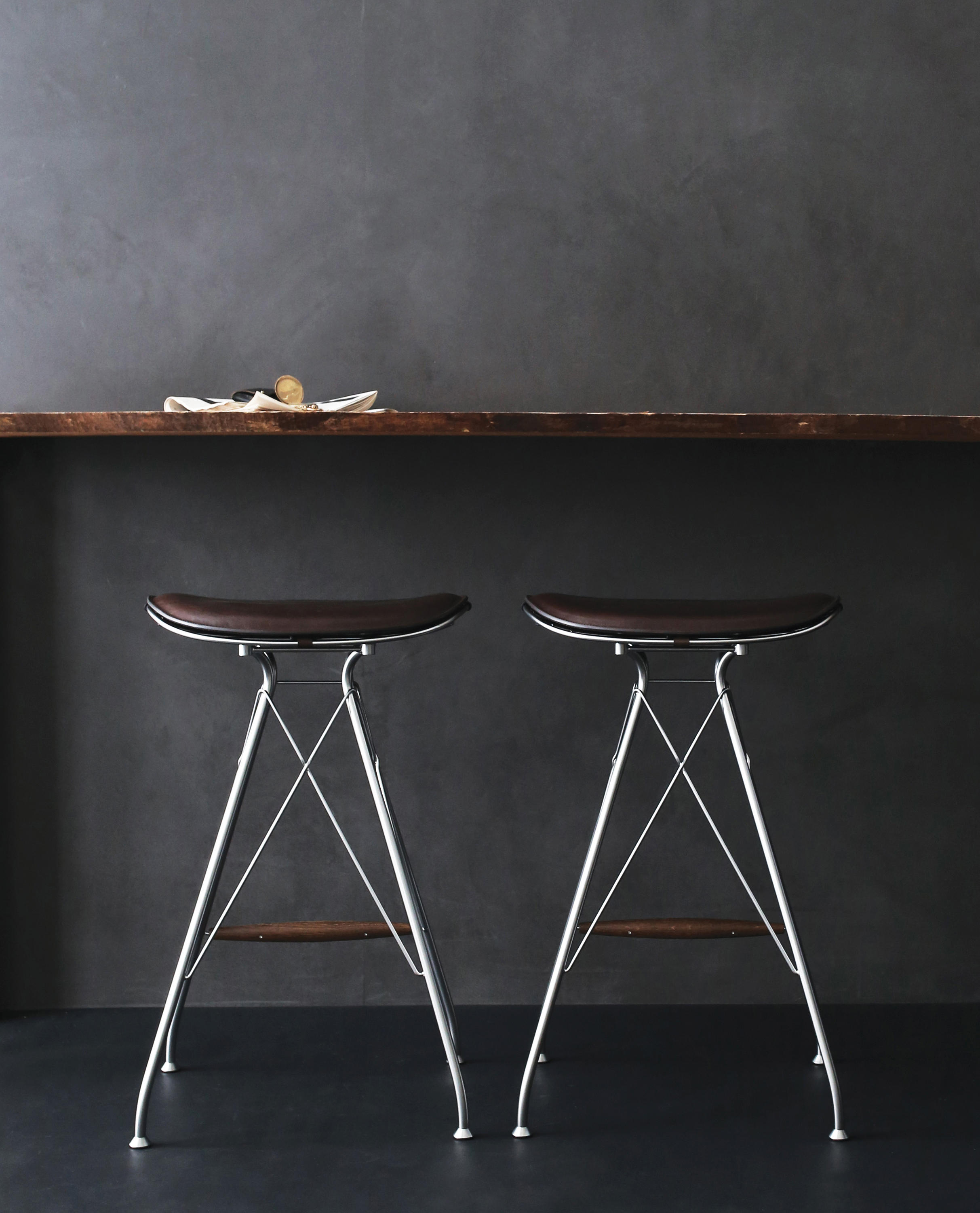 金属丝吧椅由Jasper Overgaard和Christian Dyrman设计。2014年设计的金属丝躺椅是一种更低、更宽、更平放的版本,与铁丝餐椅相比。