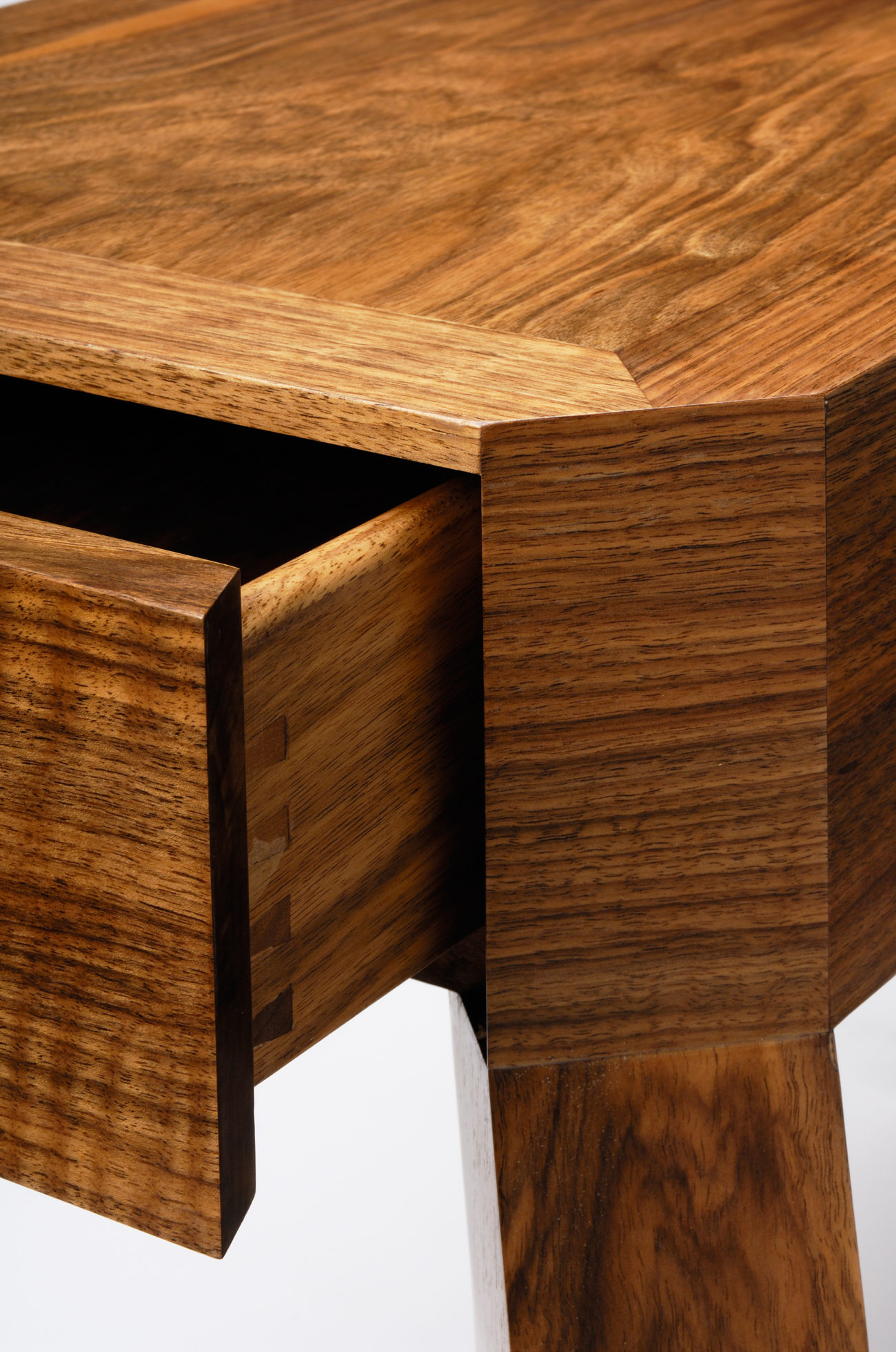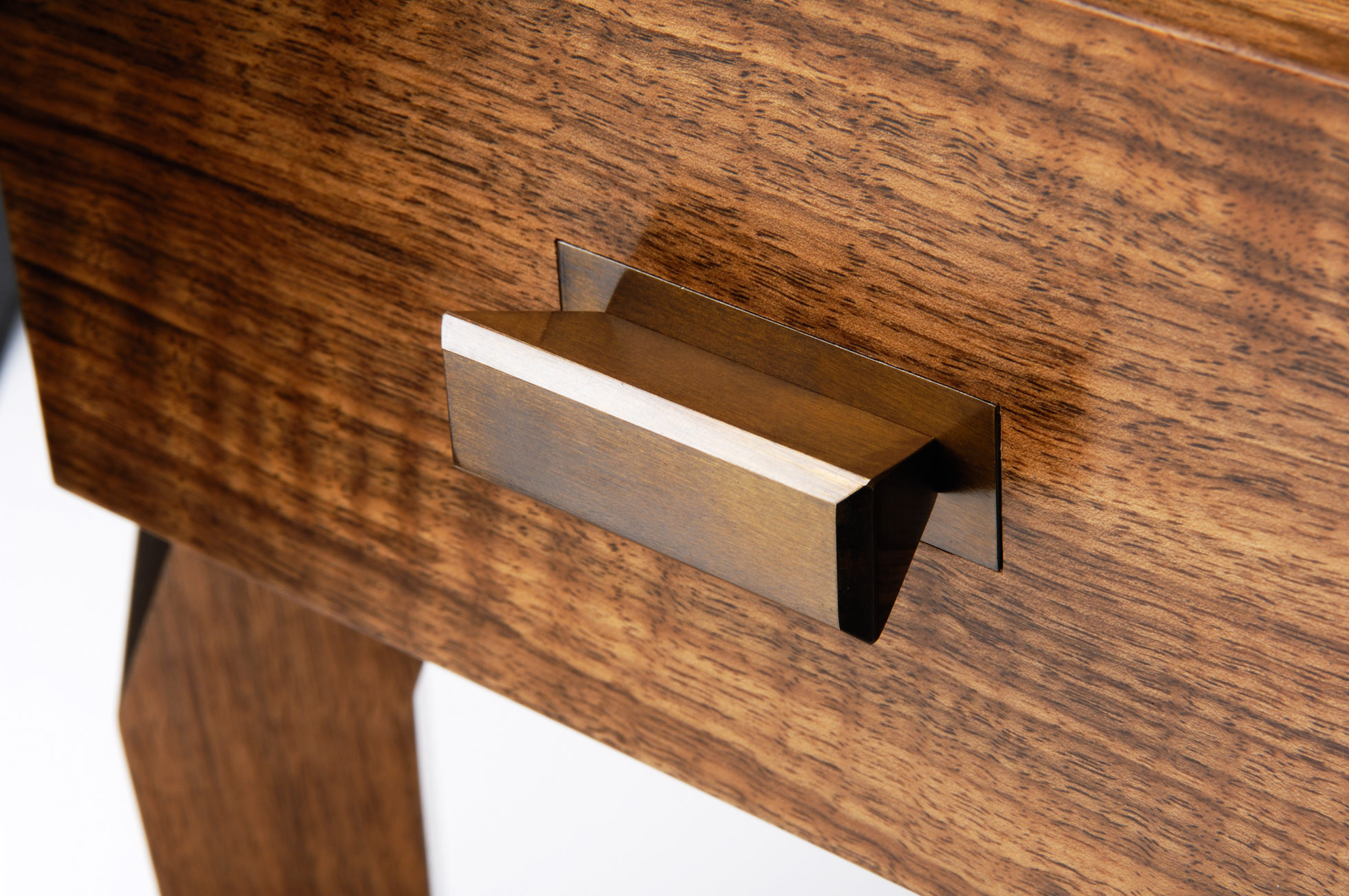 这个庄严的边桌传统上由实木和单板构成,带有坚固的金属手柄和燕尾形抽屉。