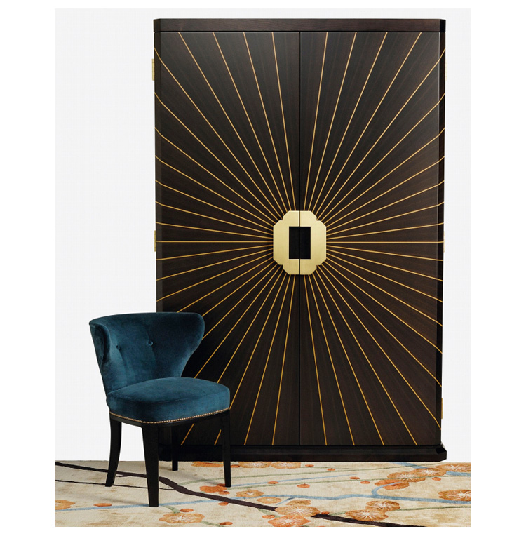这是一个天体中心件,超新星内阁带有可调节搁板。 内部可以指定为衣柜,酒吧或其他用途。 其他木材和金属饰面可供选择。
