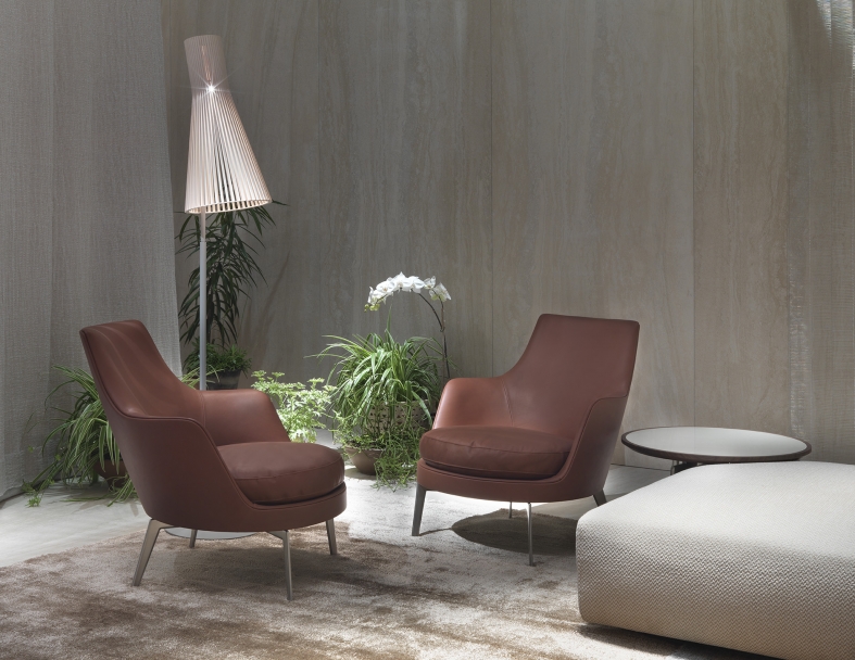 Guscio SOFT是Flexform的扶手椅,框架采用硬质聚氨酯。 座垫采用弹性内芯羽绒。 Guscio SOFT有多种面料或皮革面料可供选择,是任何家居的理想选择,增添舒适而时尚的座位。