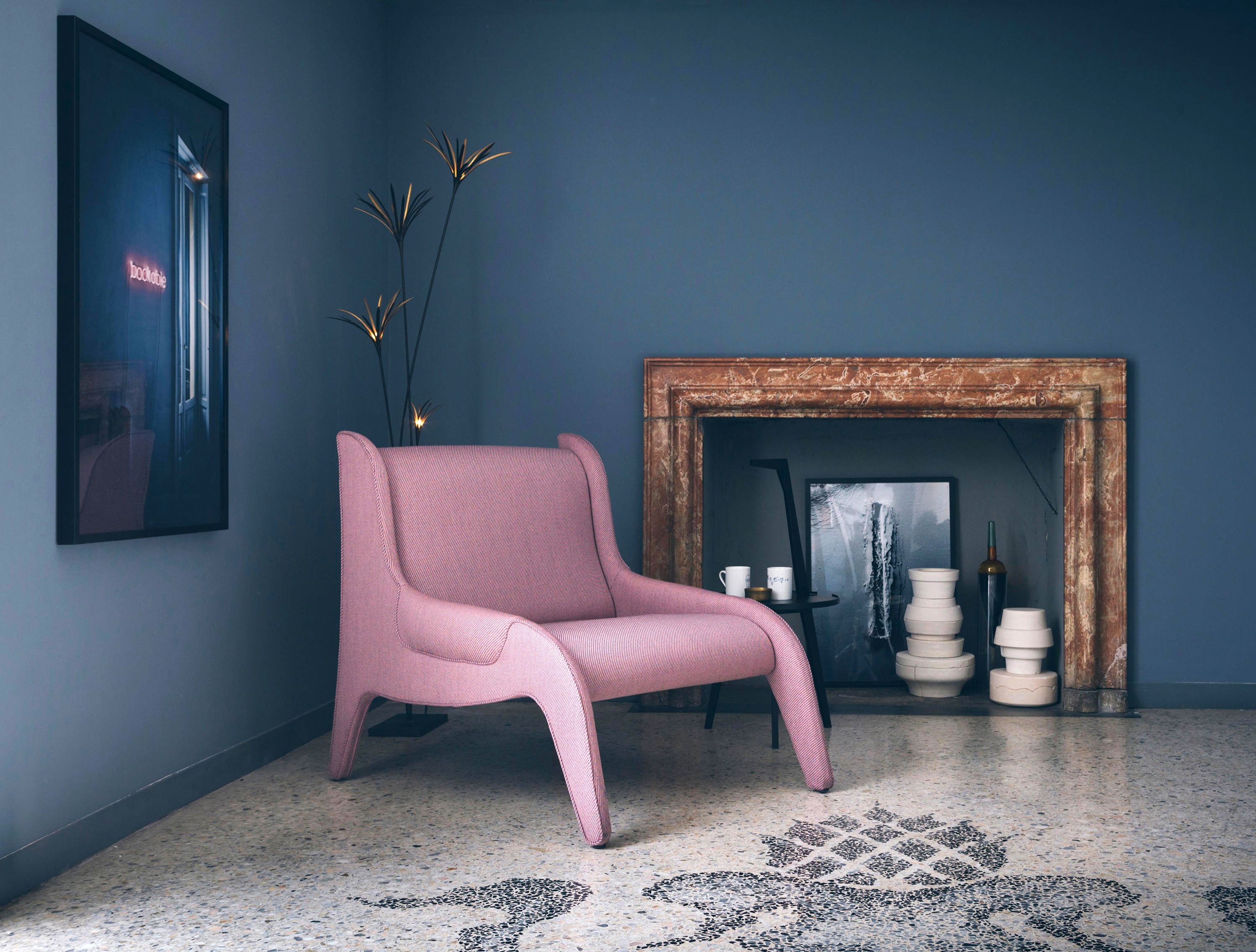 配备舒适宽座位的扶手椅。内部使用弹性绷带和钢框架。使用无CFC聚氨酯海绵和喷胶棉填充。侧板也能充当扶手。使用不可拆卸的布艺面料或皮革软包。椅脚采用黑色塑料材料制成。也有红色布艺面料软包的经典版扶手椅。桑顿·怀尔德(Thornton Wilder)的《九死一生》是在20世纪40年代末首次在米兰皮科罗剧院(Piccolo Teatro)演出的首批喜剧之一,赞努索被委任为此设计舞台布景和家具。包含使用其已经试验过的新材料并命名为Antropus的扶手椅。