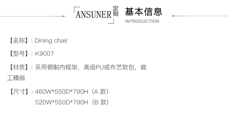 该单椅内部采用钢结构,无CFC聚氨酯海绵填充。椅脚采用黑色塑料。椅套使用可拆卸布艺面料或柔软皮革。