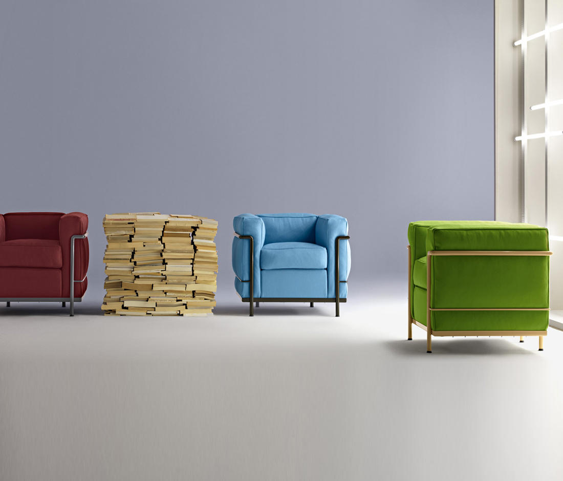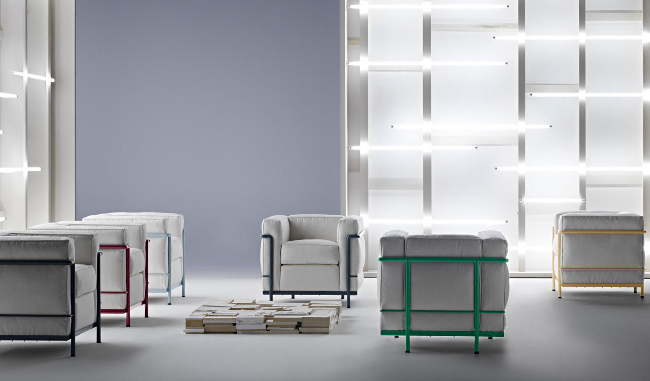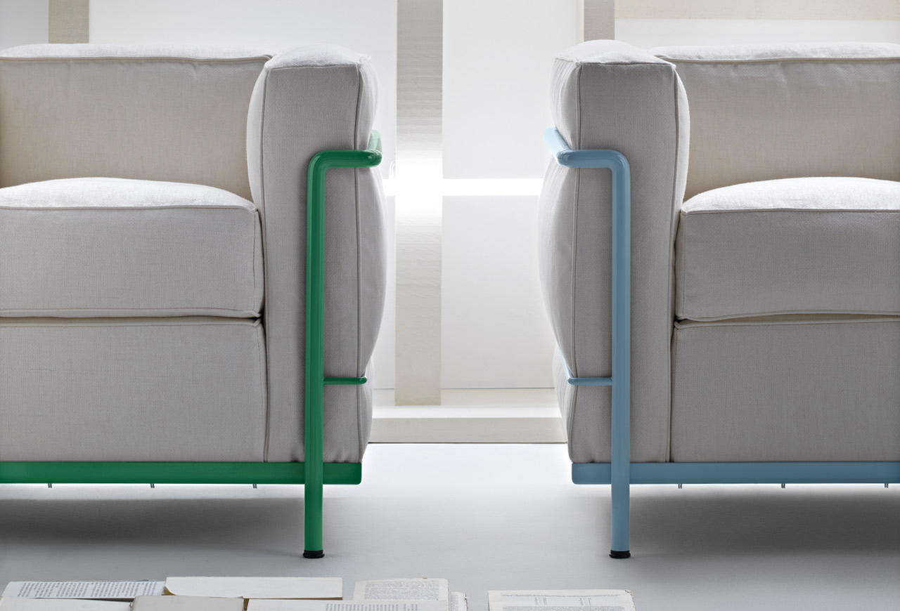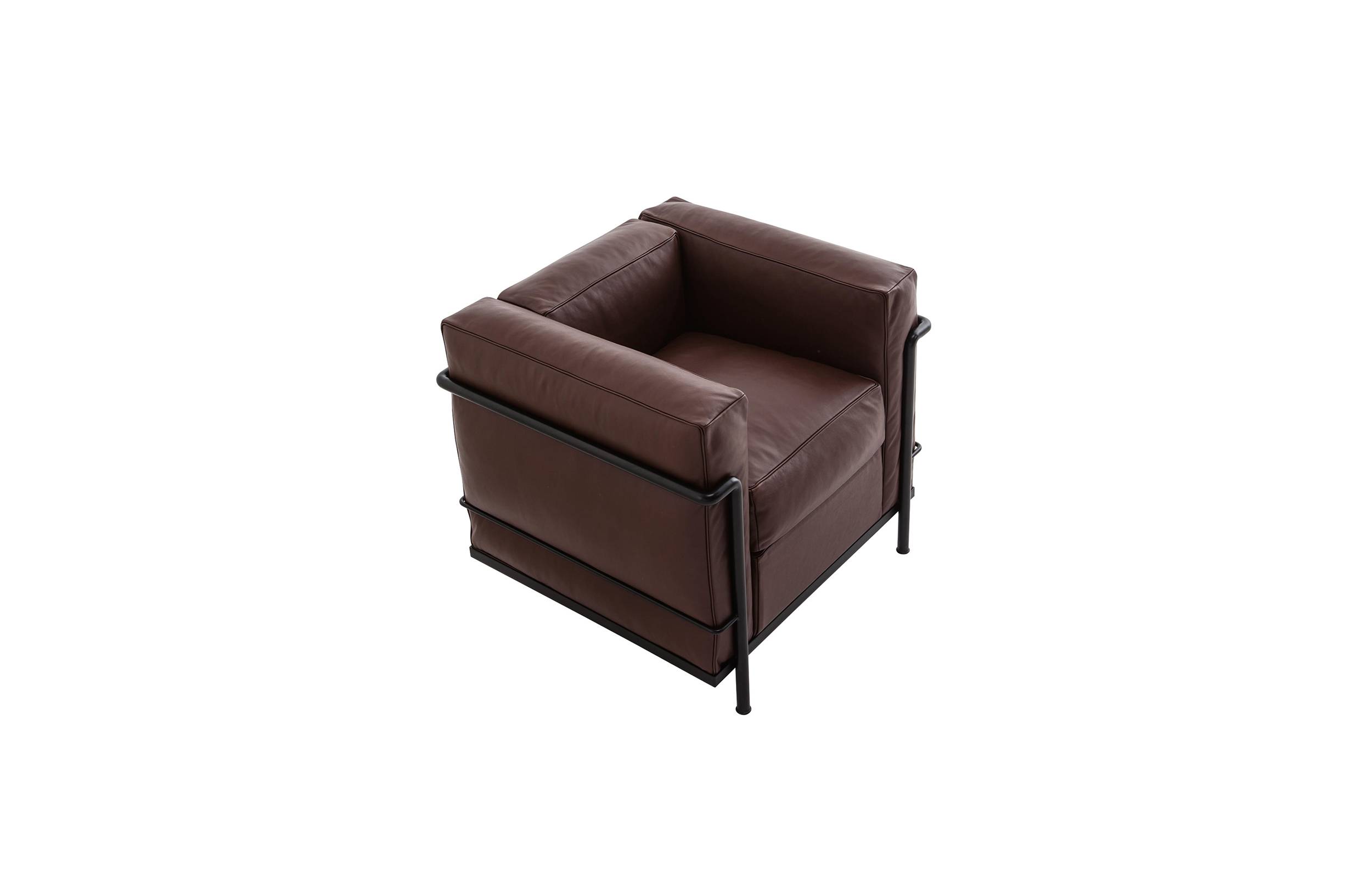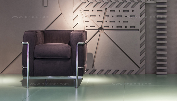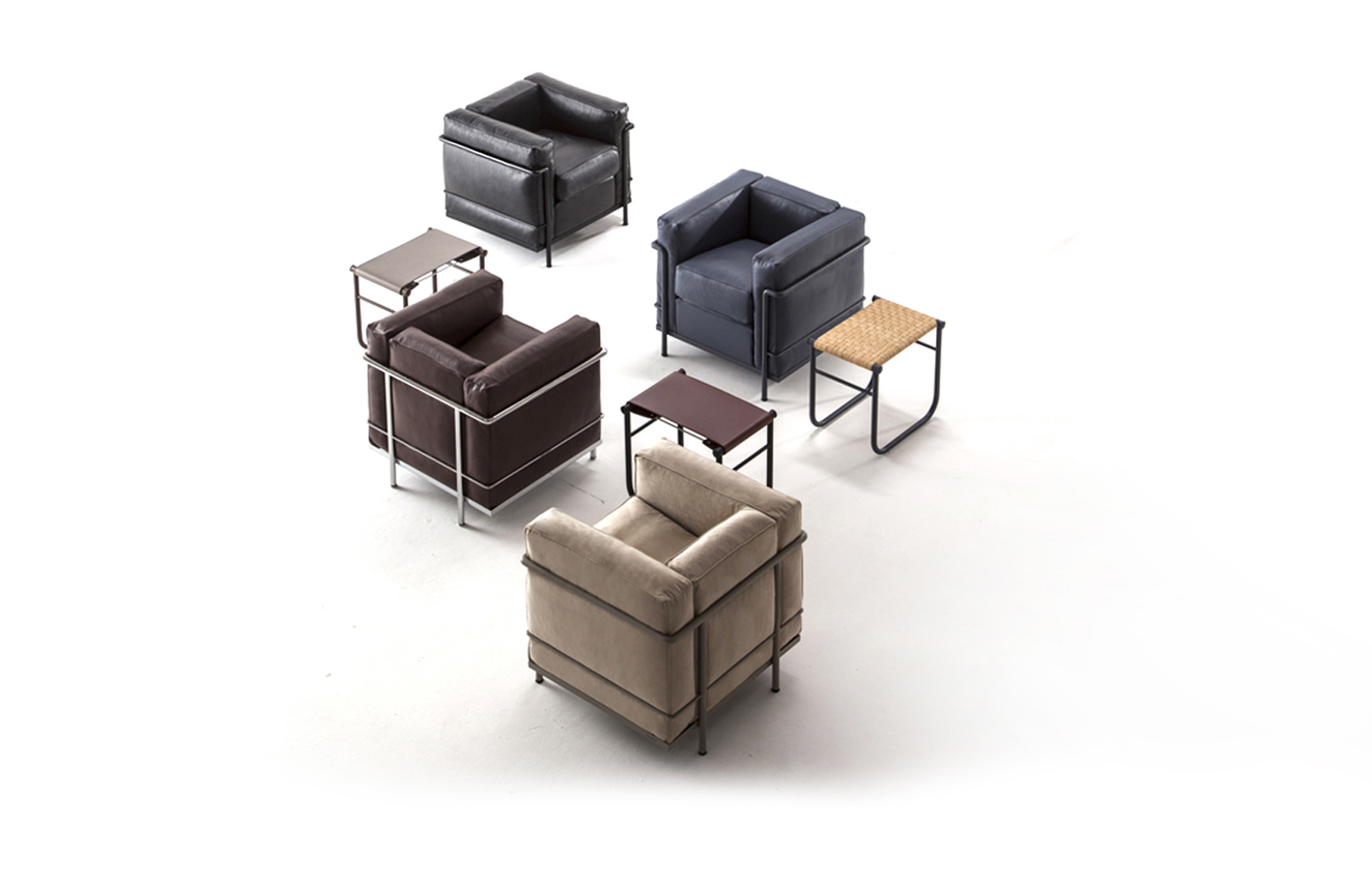 采用CR3三价镀铬钢结构或哑灰色、浅蓝、绿色、棕色、泥土色、象牙白色或黑色珐琅钢架的扶手椅,两人位或三人位沙发及脚凳。柔软的衬垫采用聚氨酯海绵和喷胶棉或聚氨酯芯羽绒棉(脚凳除外)。皮革或布艺面料软包套面。还有仅用于镀铬钢架模型的技术微纤维织物。设计史上另一个永恒的经典。于1928年设计的该款是现代椅的原型。内部靠垫与笼式框架的分离是椅子理性方法的具体肯定。真正的经典之作。