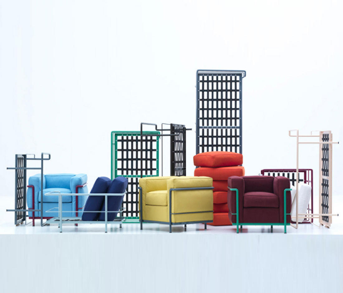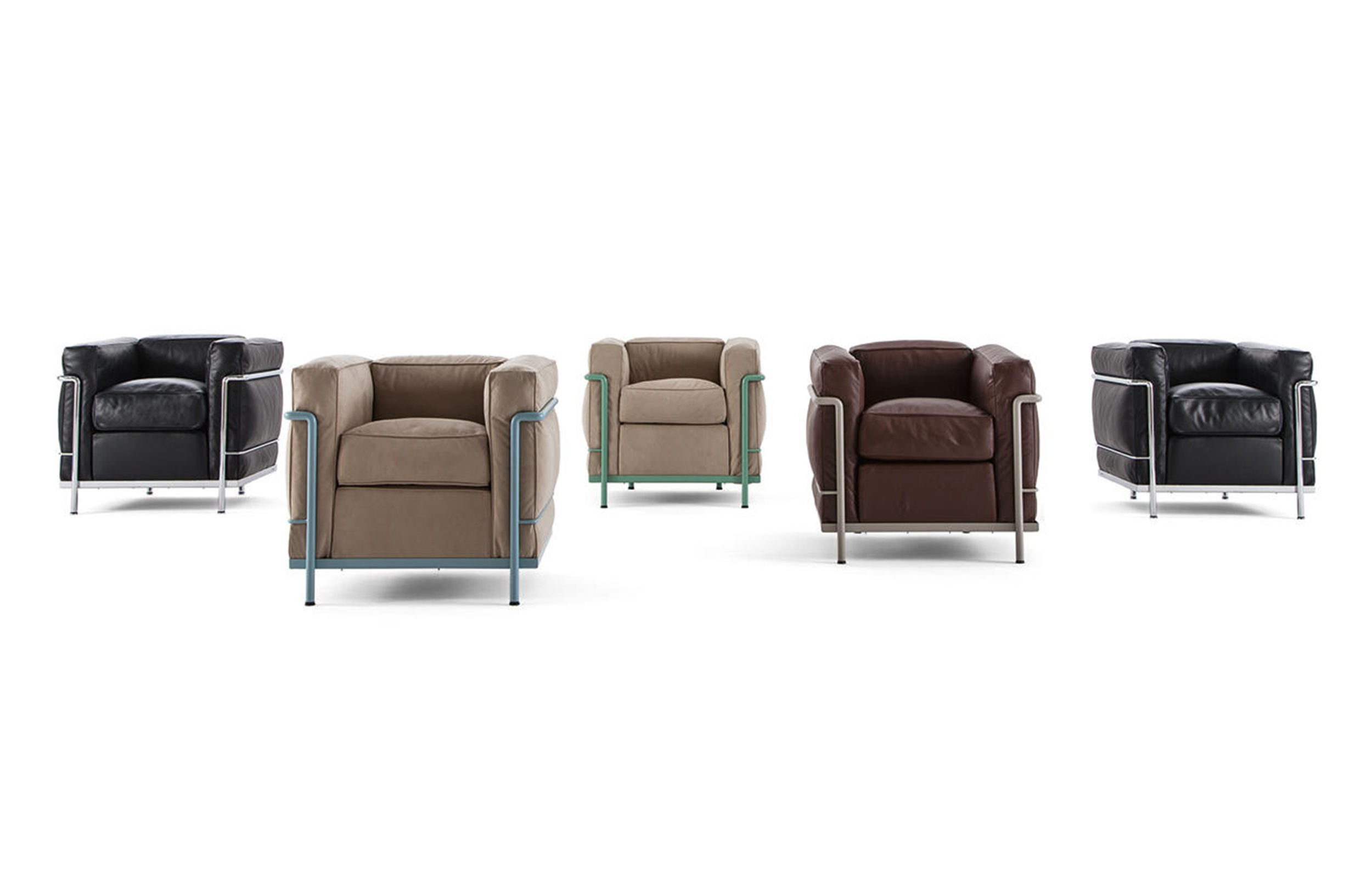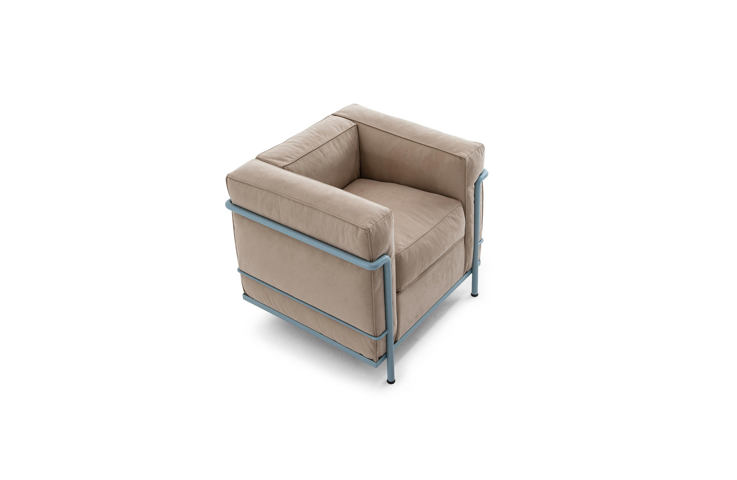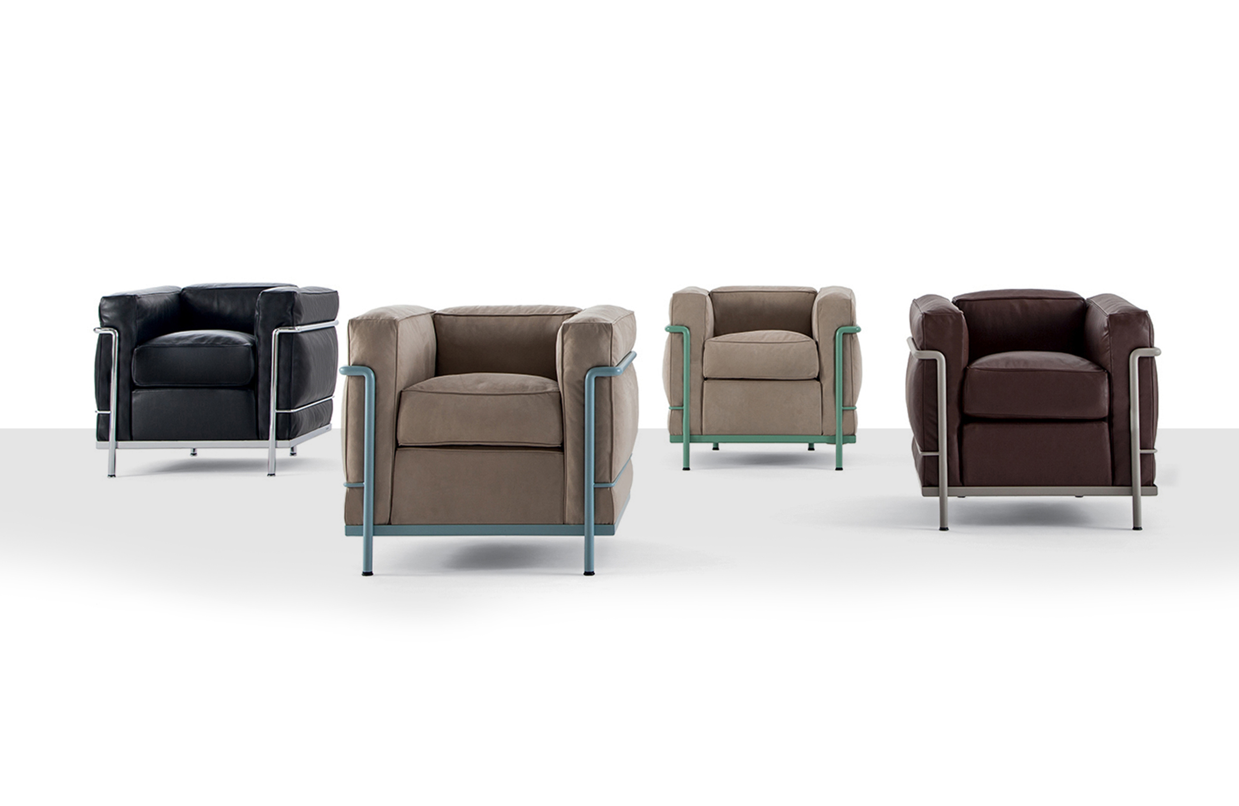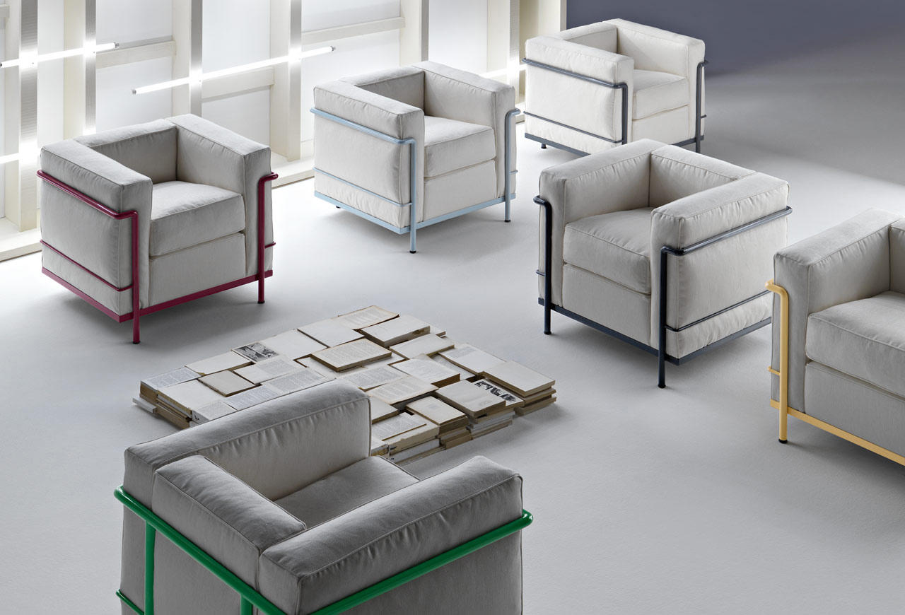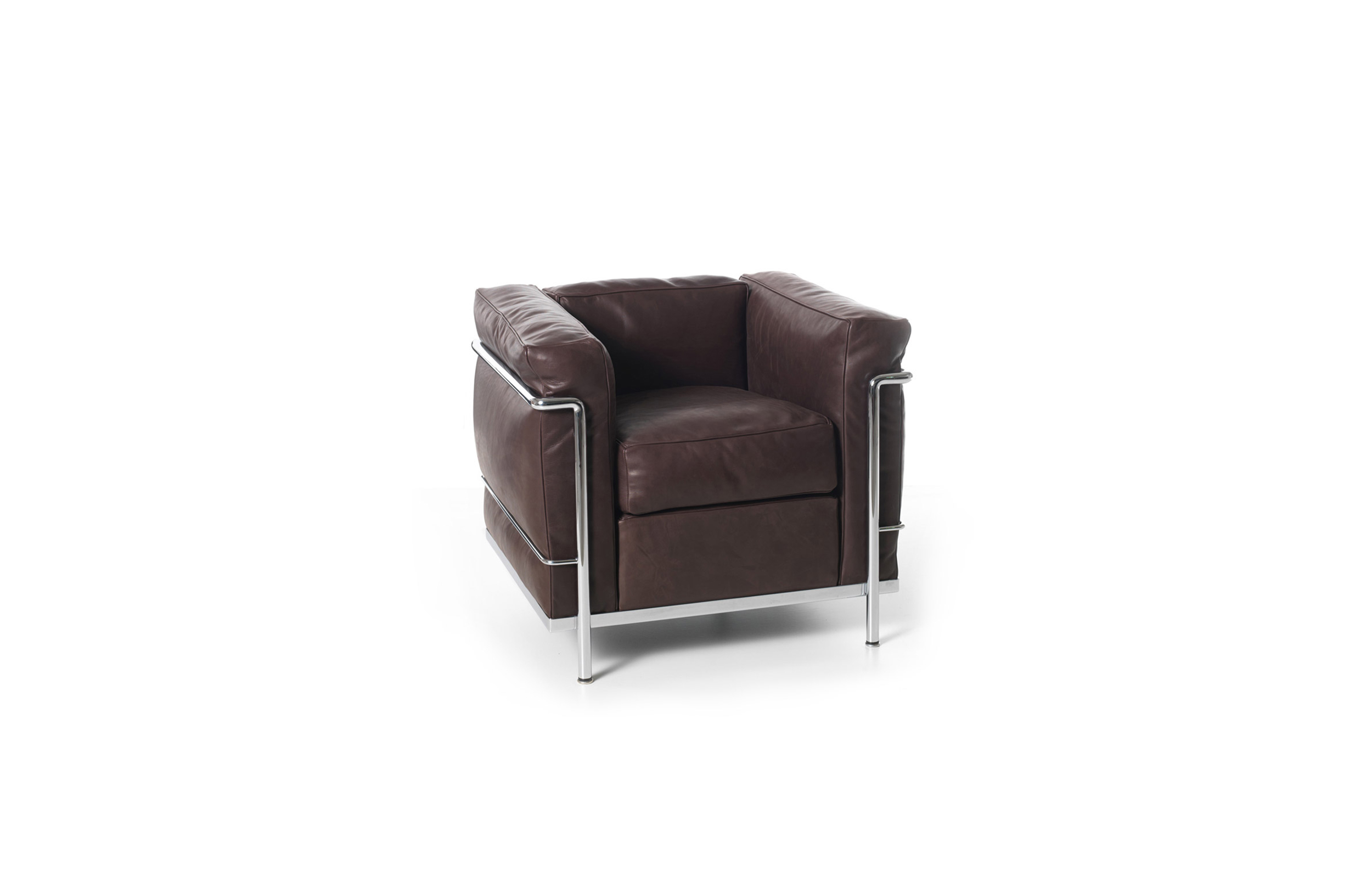 采用CR3三价镀铬钢结构或哑灰色、浅蓝、绿色、棕色、泥土色、象牙白色或黑色珐琅钢架的扶手椅,两人位或三人位沙发及脚凳。柔软的衬垫采用聚氨酯海绵和喷胶棉或聚氨酯芯羽绒棉(脚凳除外)。皮革或布艺面料软包套面。还有仅用于镀铬钢架模型的技术微纤维织物。设计史上另一个永恒的经典。于1928年设计的该款是现代椅的原型。内部靠垫与笼式框架的分离是椅子理性方法的具体肯定。真正的经典之作。