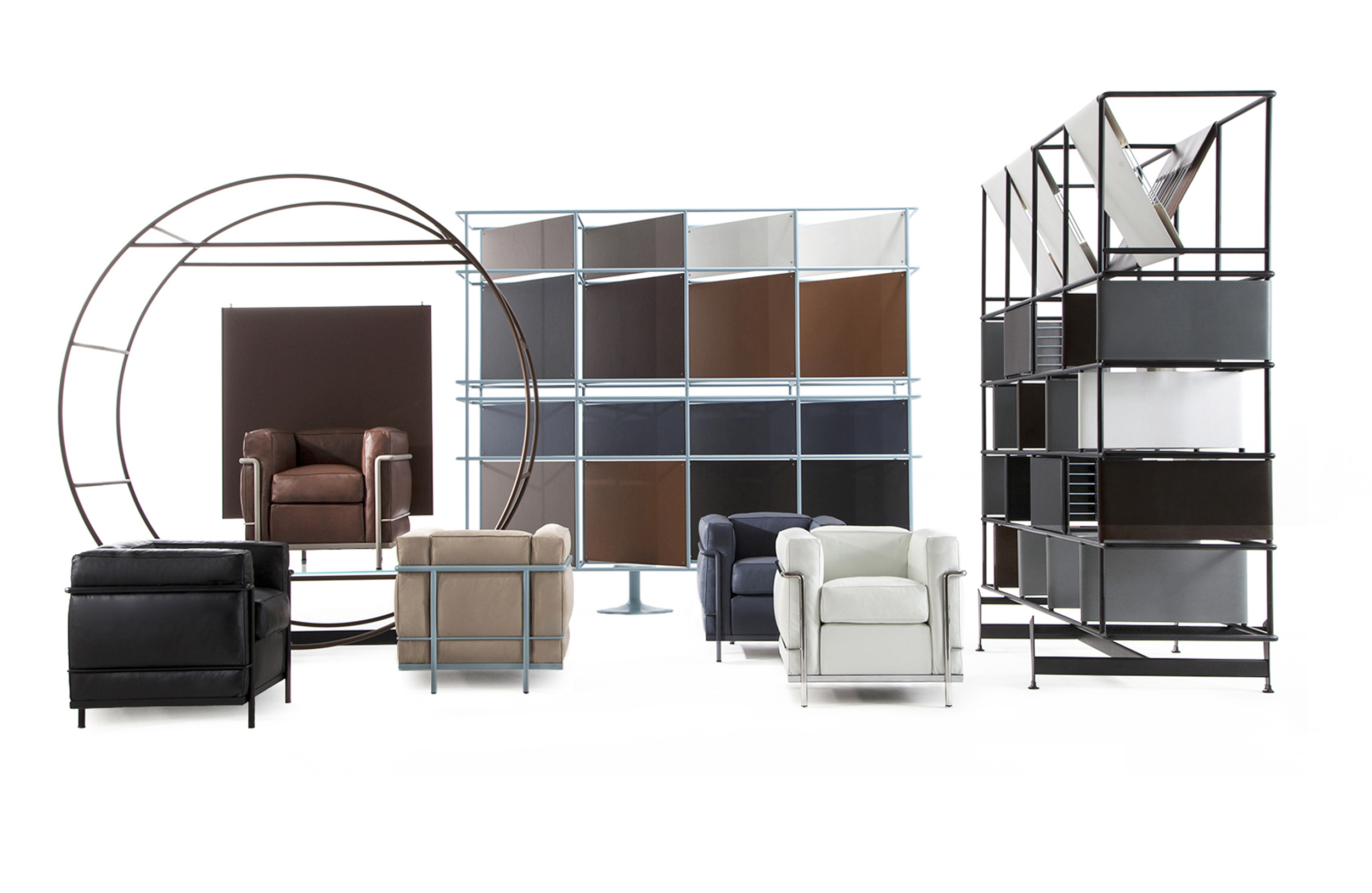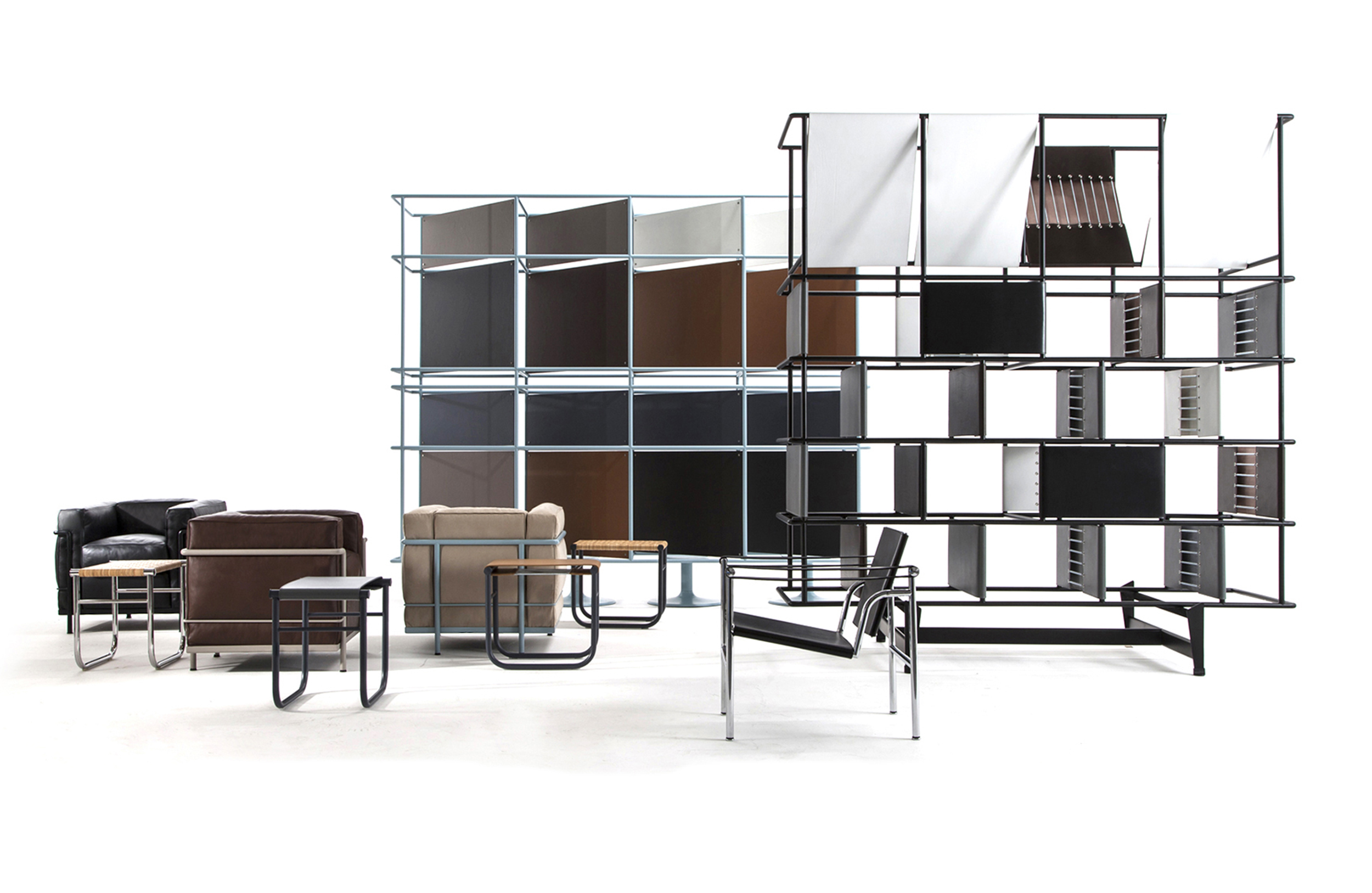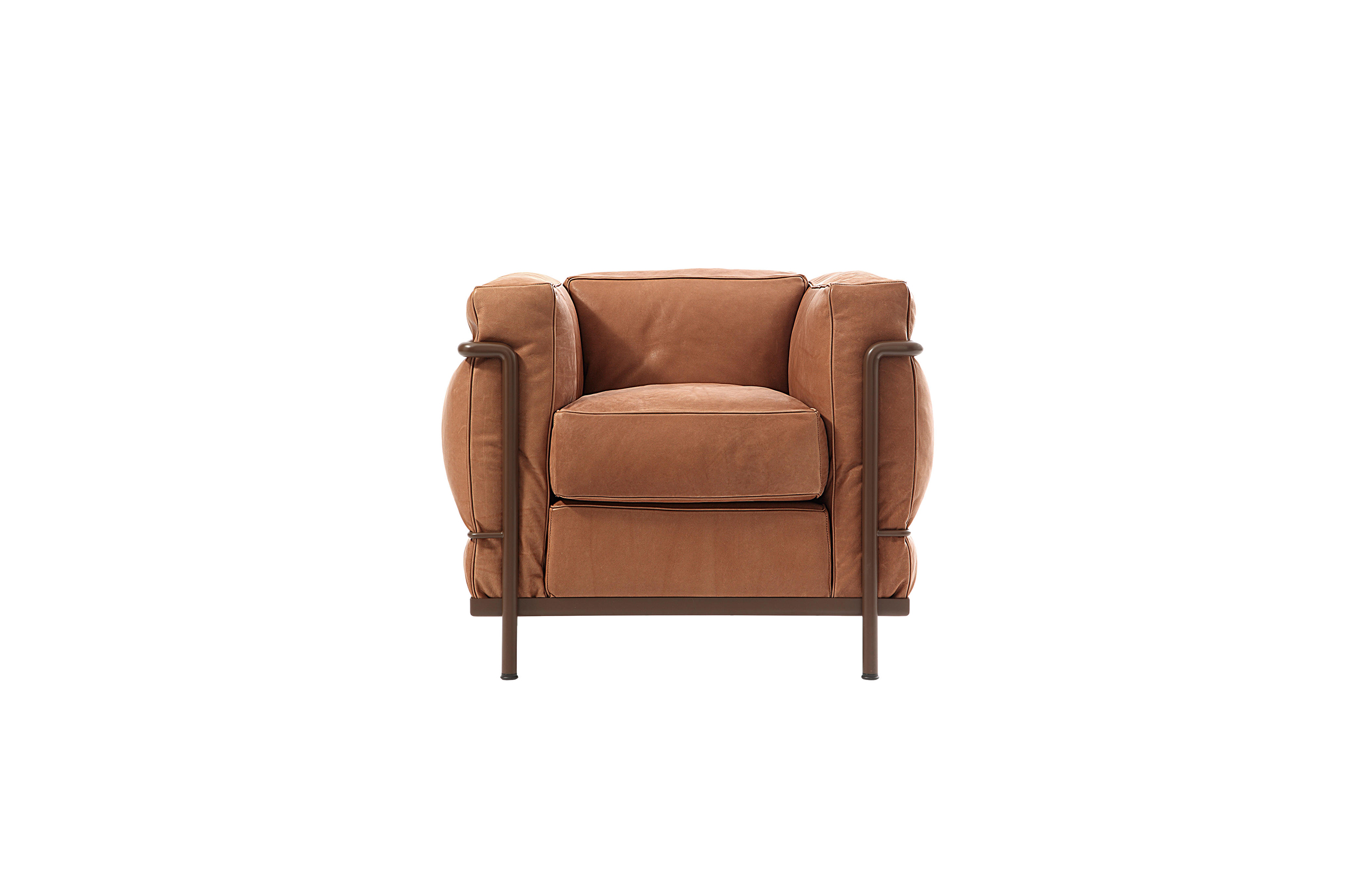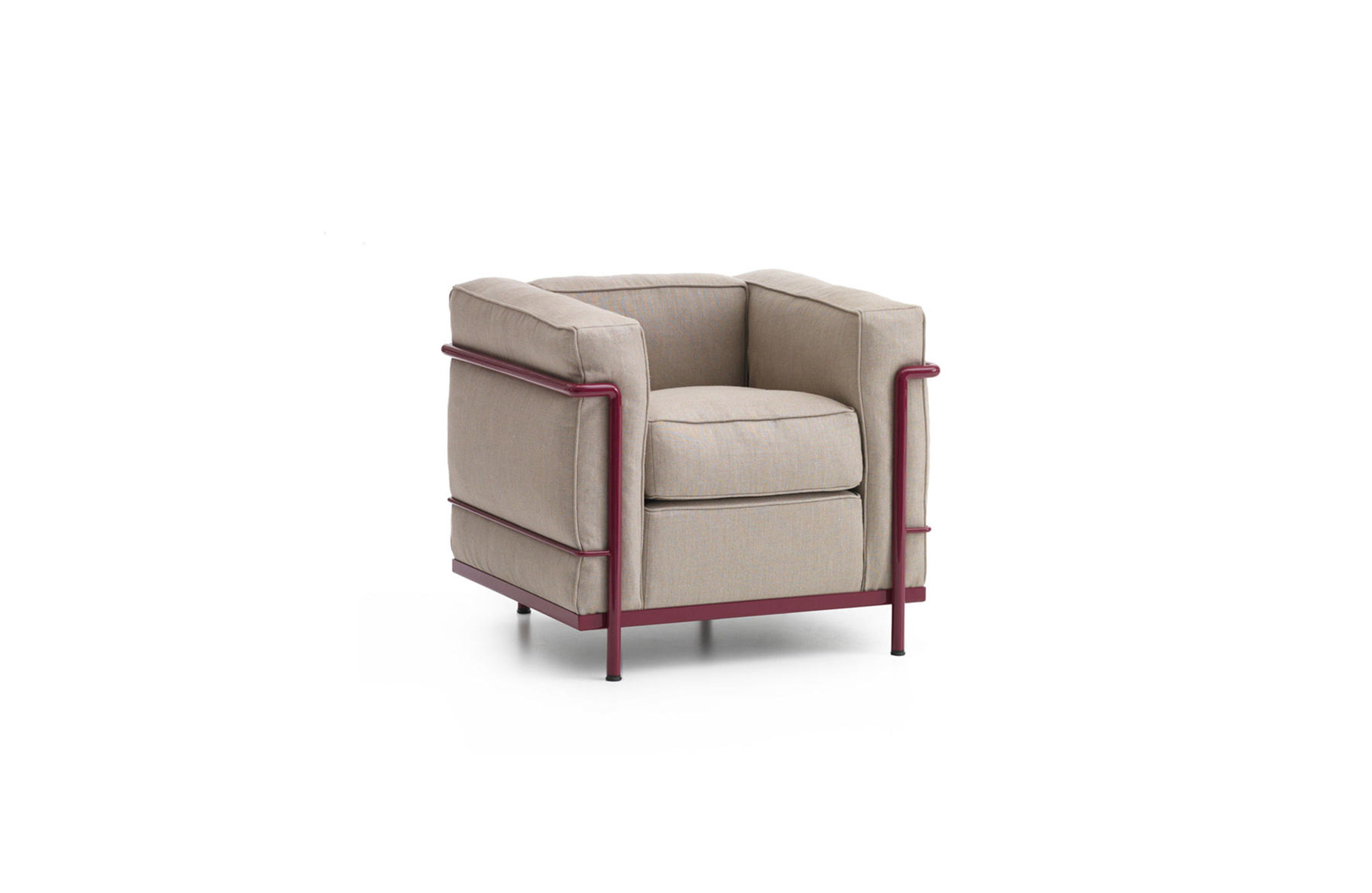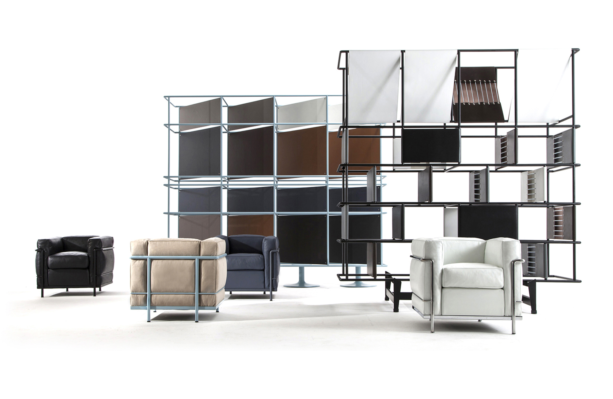 采用CR3三价镀铬钢结构或哑灰色、浅蓝、绿色、棕色、泥土色、象牙白色或黑色珐琅钢架的扶手椅,两人位或三人位沙发及脚凳。柔软的衬垫采用聚氨酯海绵和喷胶棉或聚氨酯芯羽绒棉(脚凳除外)。皮革或布艺面料软包套面。还有仅用于镀铬钢架模型的技术微纤维织物。设计史上另一个永恒的经典。于1928年设计的该款是现代椅的原型。内部靠垫与笼式框架的分离是椅子理性方法的具体肯定。真正的经典之作。